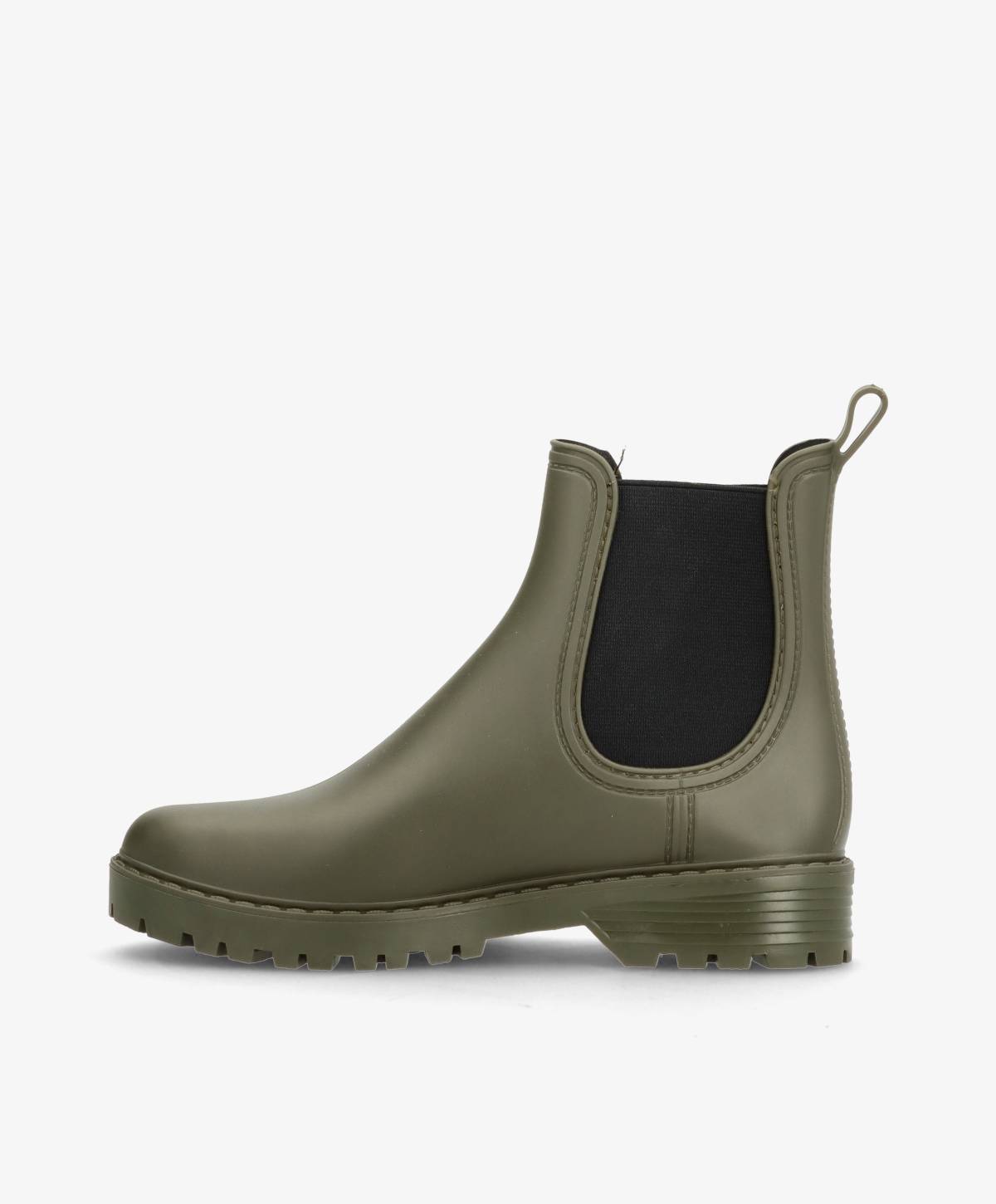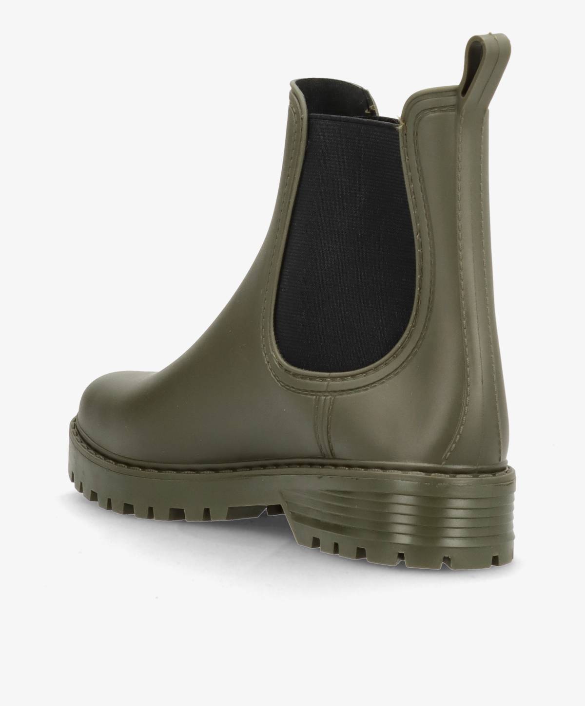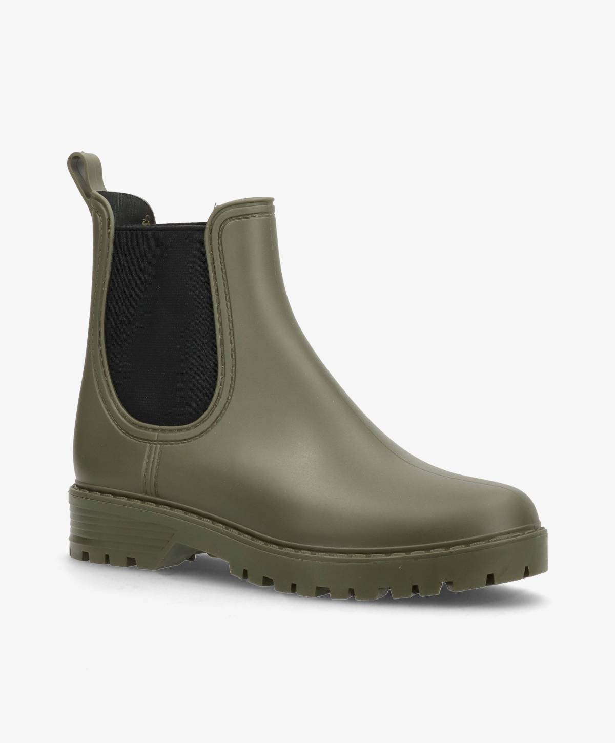 Gummistøvle fra Havanna Shoes er en moderne og praktisk gummistøvle i en elegant khaki farve. Det klassiske Chelsea-design med elastik i siderne og strop bagpå gør den nem at tage af og på, mens den vandafvisende overflade sikrer tørre fødder i alt slags vejr. Den kraftige, profilerede ydersål giver et solidt greb og stabilitet på både våde og glatte underlag.