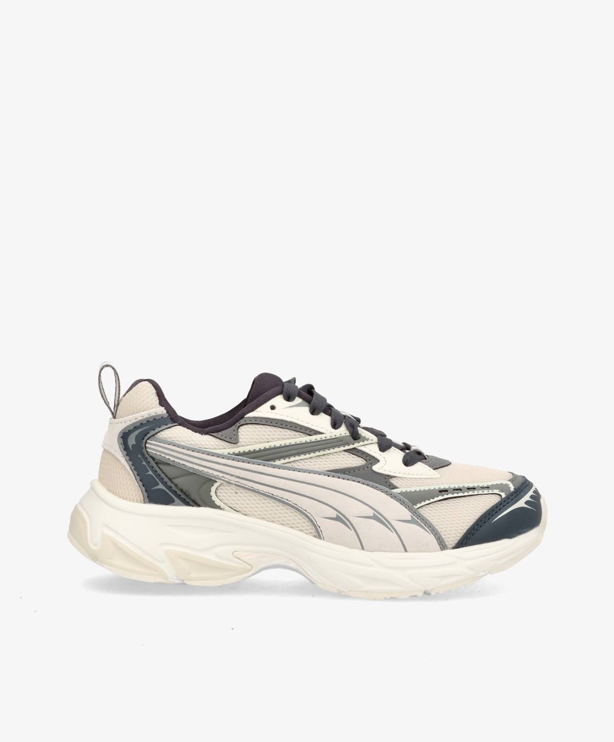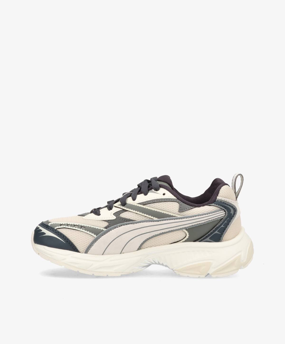 De seje Puma Morphic Retro i flotte blå/grå og beige nuancer. De fede sneaks har en løftet bund, der kurver og følger fodens naturlige svaj. Dette sikrer en super god komfort, så man nemt kan bære dem hele dagen, og det giver et chunky indspark til det stilrene design. De fine sneakers lukkes med snørebånd og kan derfor nemt justeres efter ønske og behov. Med disse sneakers får du en garderobefavorit, som du med sikkerhed vil bruge sæson efter sæson.