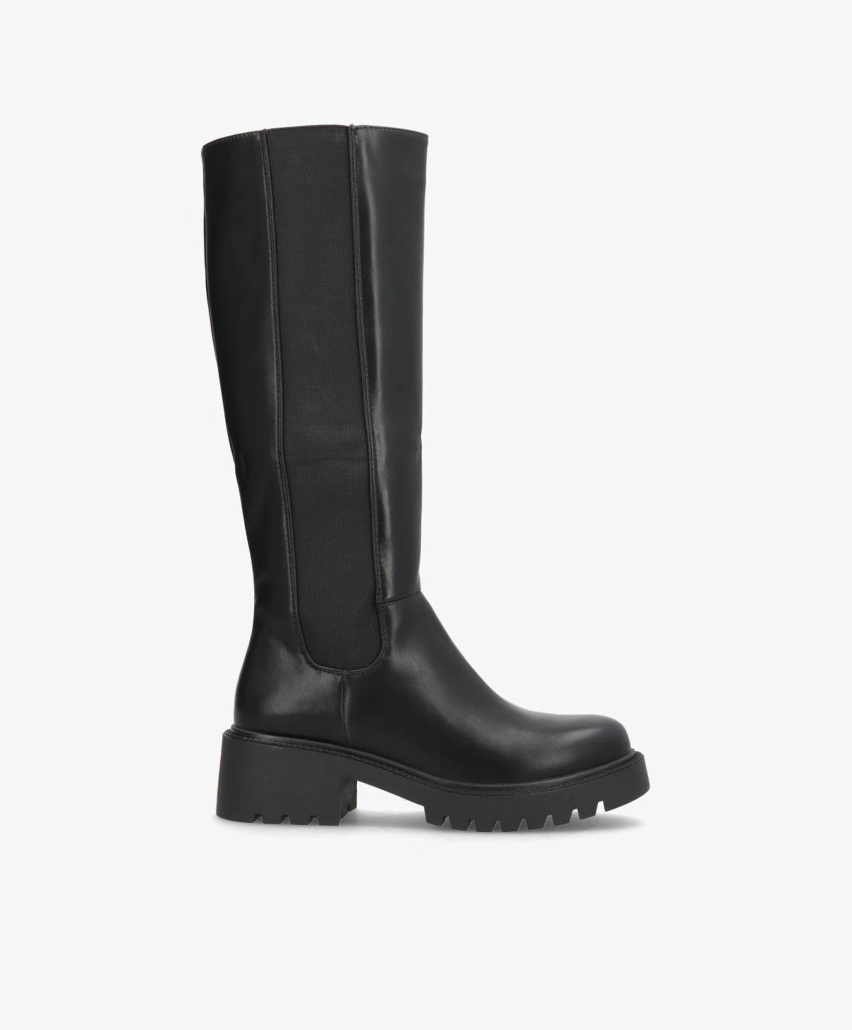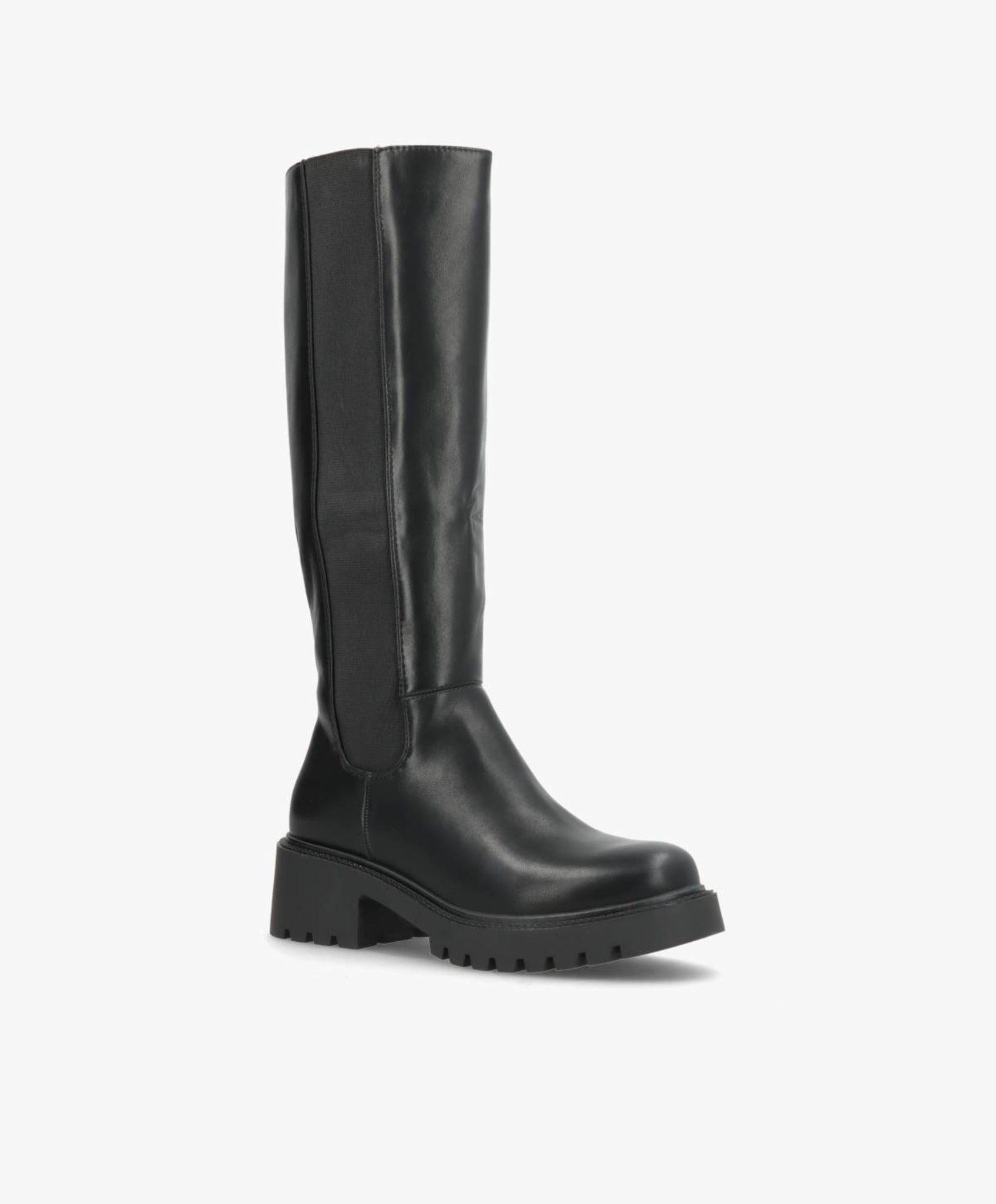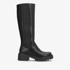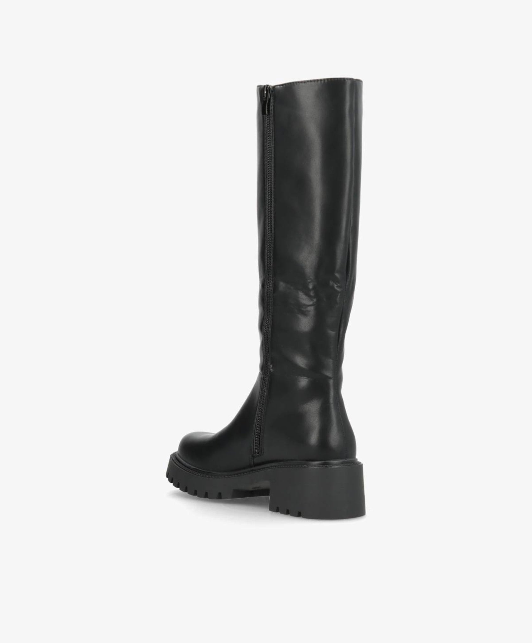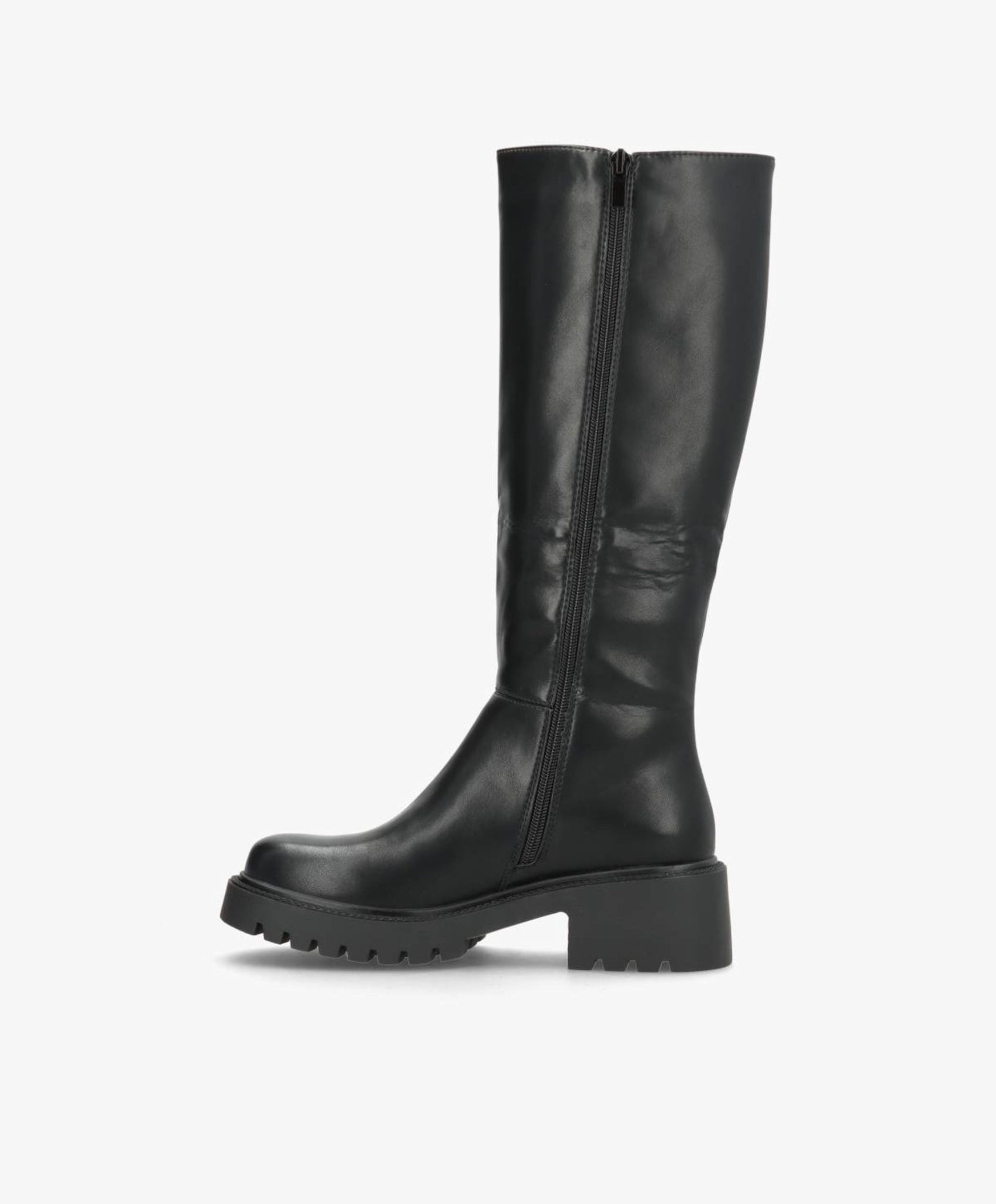 Elegant og klassisk lang støvle i sort imiteret skind, der kombinerer komfort og stil. Den høje silhuet giver et sofistikeret udtryk, mens den elastiske sidepanel og praktiske lynlås gør det nemt at få støvlen af og på. Den kraftige gummisål sikrer et stabilt fodfæste, perfekt til både byliv og hverdagsbrug.