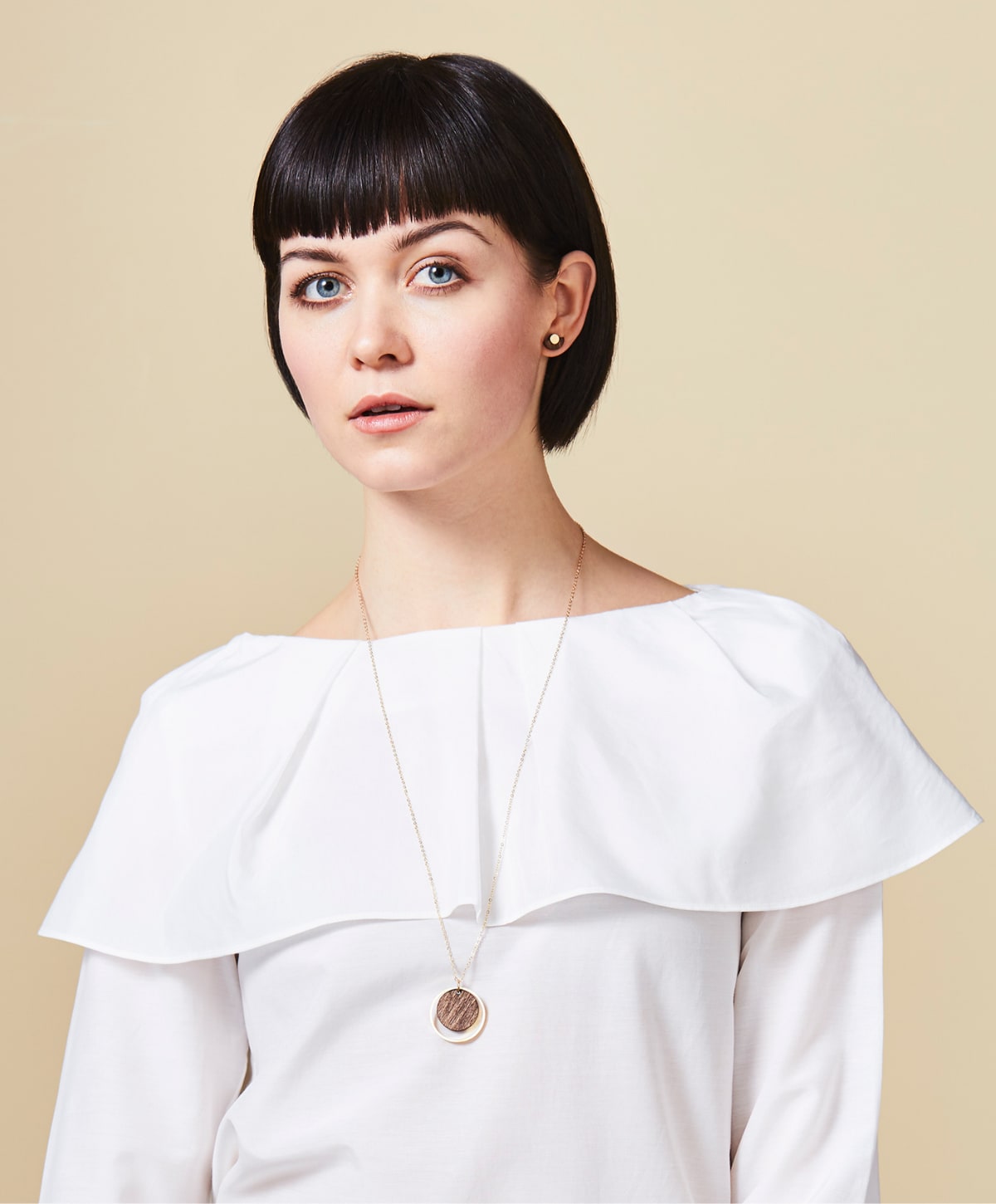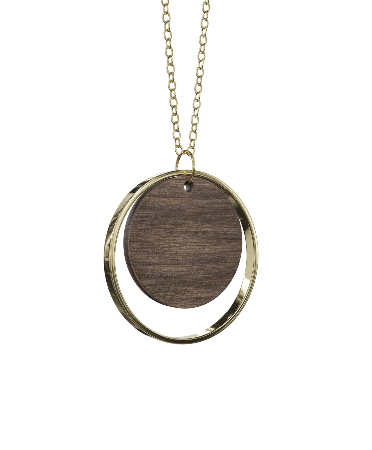 Smuk halskæde fra Grundled lavet i mørkt træ med en fin forgyldt ring omkring. Halskæden lukkes bagtil med lås og er udført i nikkelfri metal. Halskæden måler desuden omkring 40 cm.
