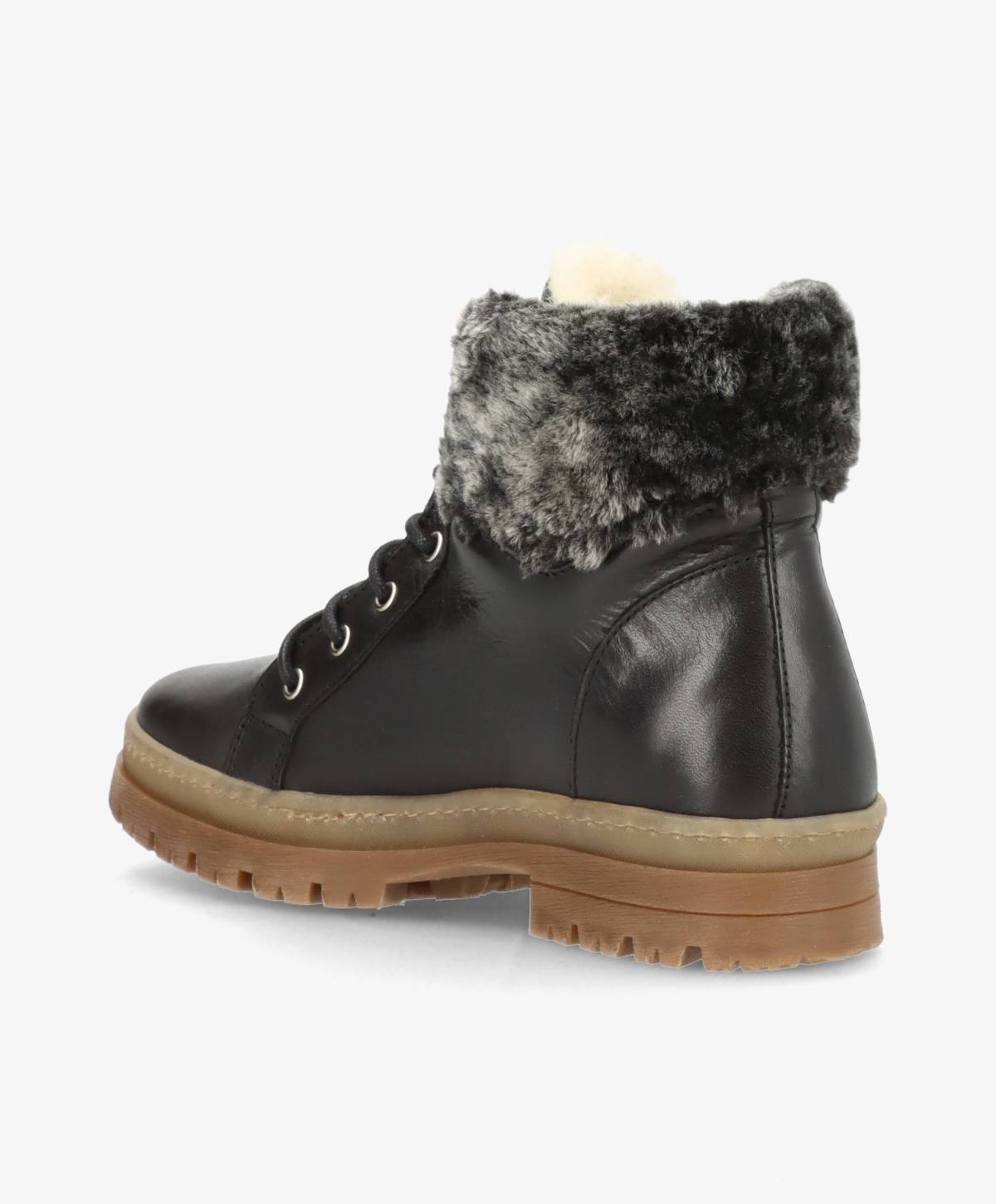 ALDINA LACE WARM er den perfekte vinterstøvle til den stilbevidste kvinde, der søger både komfort og stil. Støvlen er fremstillet i blødt og slidstærkt læder, der både beskytter og holder fødderne varme på kolde dage. Med sit 100% naturlige uldfoer sikrer denne støvle en uovertruffen varmeisolering, som holder dine fødder behageligt tempererede, selv i de koldeste vintermåneder.