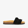 ATLAS S i sort ruskind er en stilren og moderne slider med et feminint twist. Den brede rem med raffineret flæsedetalje giver sandalen karakter, mens den sorte farve tilfører et klassisk og tidløst udtryk, der passer til både afslappede og mere elegante looks.