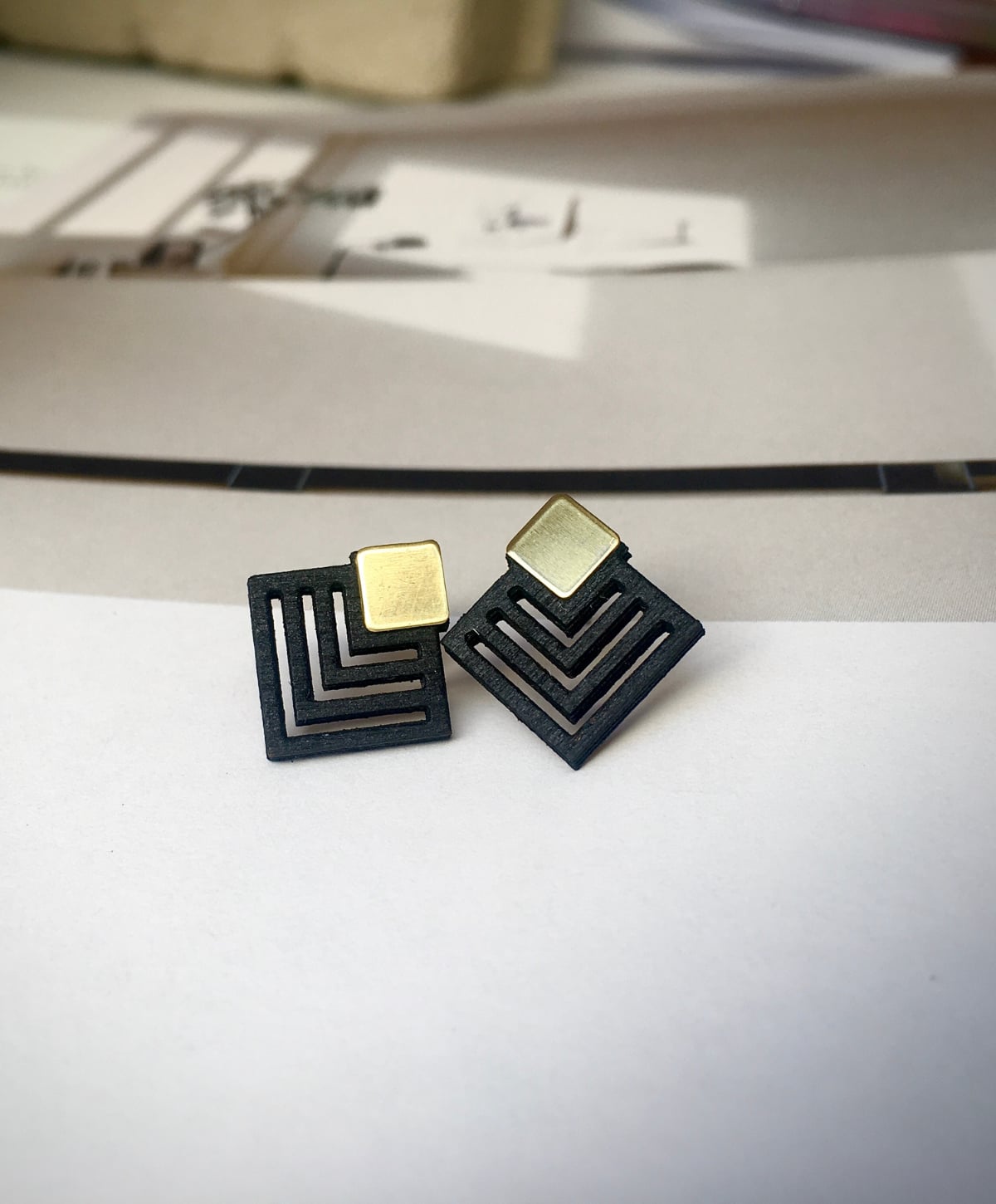 Klassiske og elegante ørestikker fra Grundled. De flotte ørestikker er lavet i sortmalet træ og har en detalje af forgyldt metal. De lukkes bagtil med lås og sidder godt til. Ørestikkerne måler omkring 1,6 cm, og er udført i en kombination af træ og forgyldt metal. De smukke ørestikker er desuden nikkelfri.