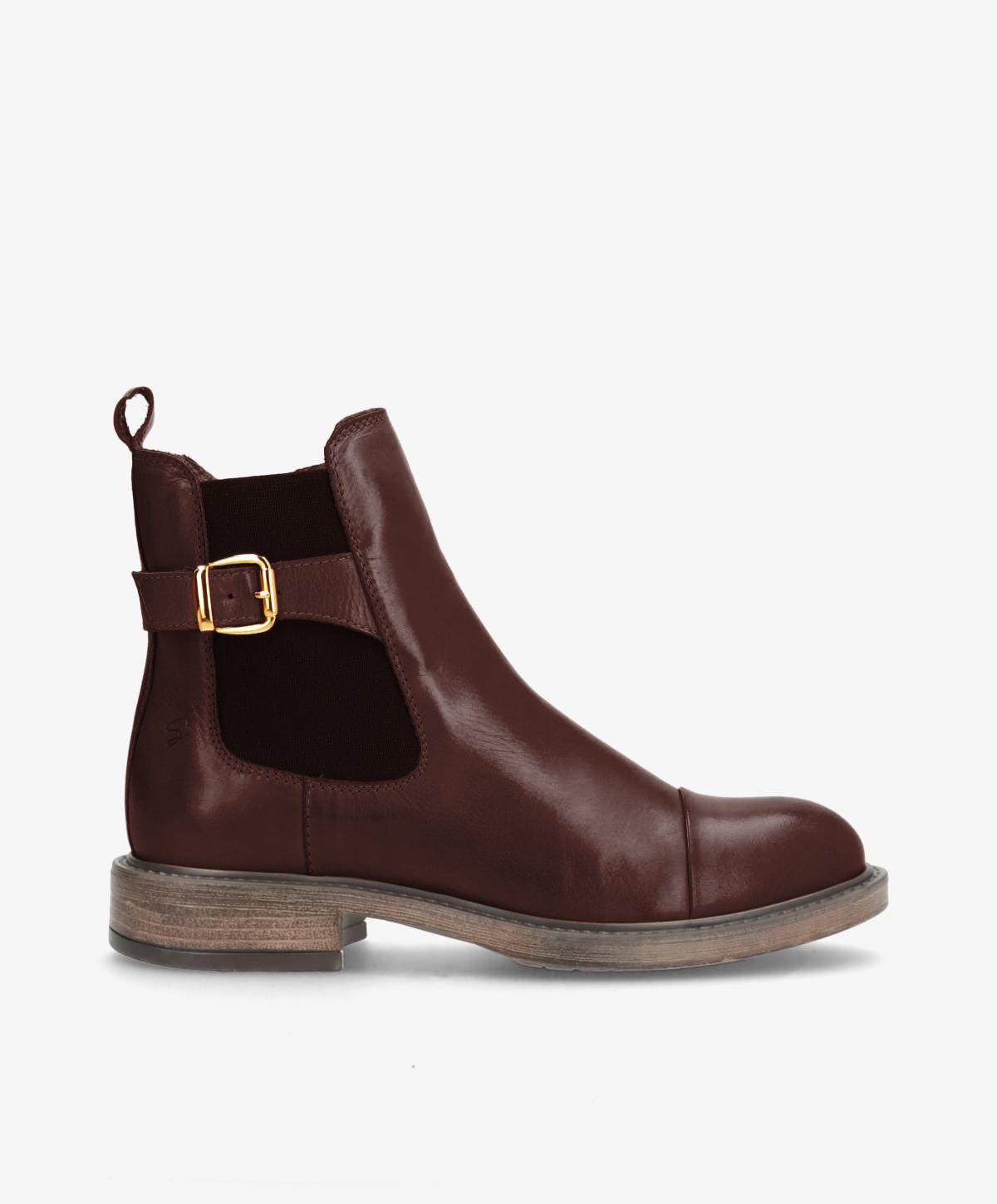 BEATRICE støvlen fra Shoedesign Copenhagen forener klassisk elegance med moderne detaljer. Den er lavet i blødt, mørkebrunt læder (ebony), som giver et varmt og eksklusivt look. Den karakteristiske chelsea-silhuet fuldendes med et fint gyldent spænde og elastikpaneler i siden, som både giver fleksibilitet og et feminint udtryk.