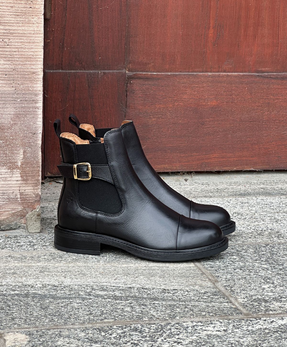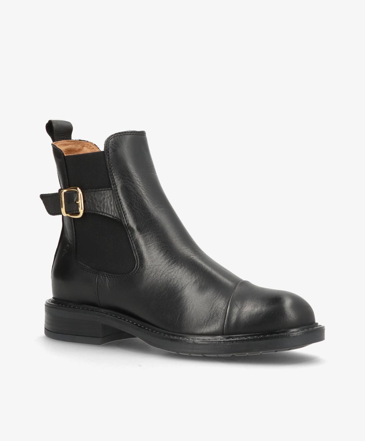BEATRICE støvlen fra Shoedesign Copenhagen forener klassisk elegance med moderne detaljer. Den er lavet i blødt, sort læder, som giver et eksklusivt look. Den karakteristiske chelsea-silhuet fuldendes med et fint gyldent spænde og elastikpaneler i siden, som både giver fleksibilitet og et feminint udtryk.
