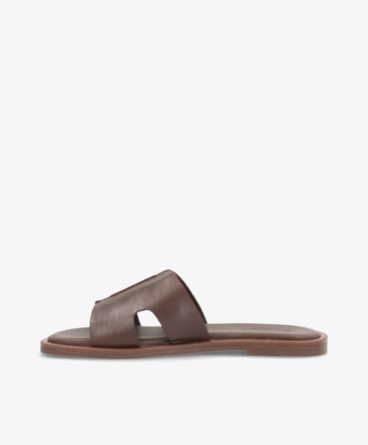 Den mørkebrune nuance gør modellen let at kombinere med både lyse og mørke sommerlooks. Den flade sål og den polstrede indersål sikrer komfort hele dagen.