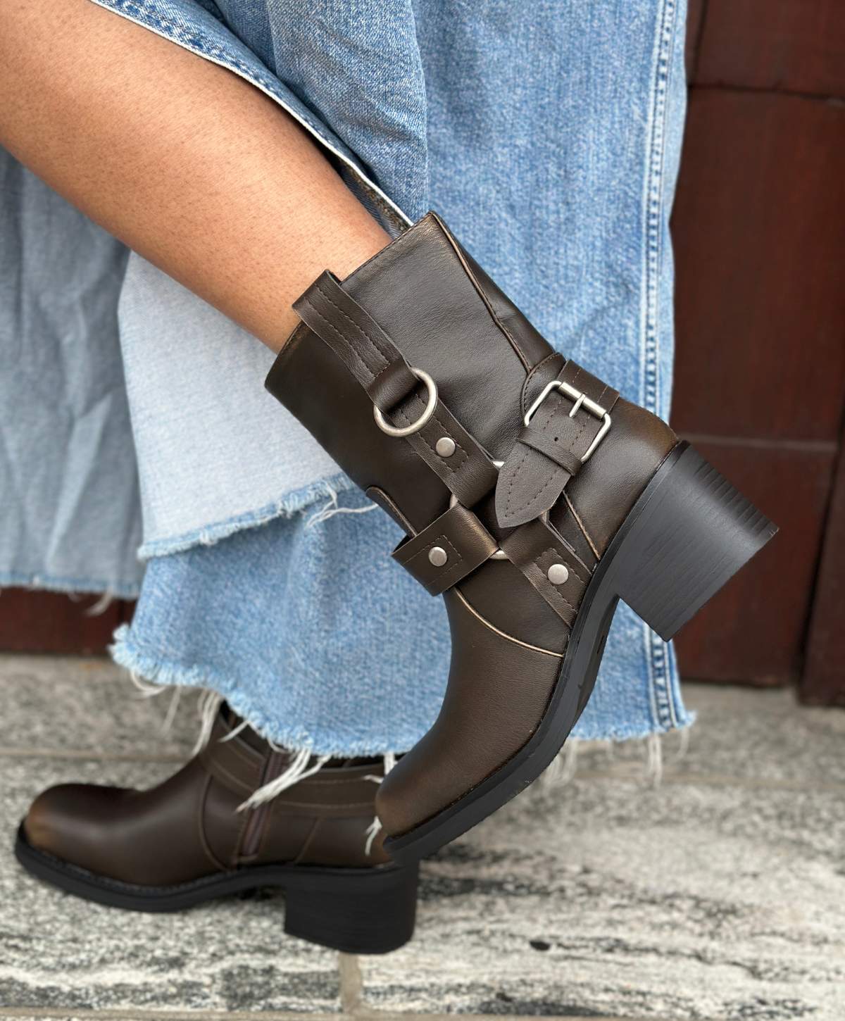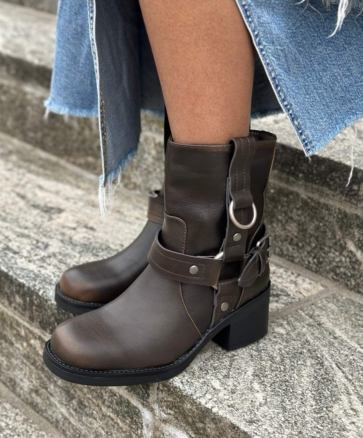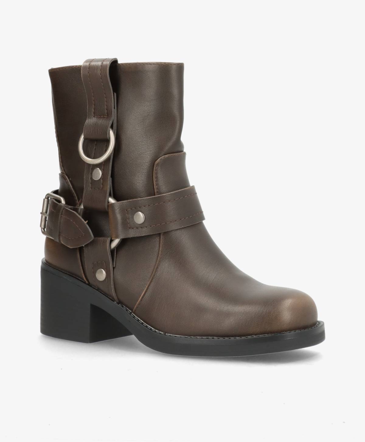 Denne brune Bonnie bikerstøvle fra Havanna Shoes er designet til dem, der ønsker at kombinere rå stil med komfort. Støvlen er fremstillet af slidstærkt kunstlæder, der både er let at vedligeholde og giver et sofistikeret udseende. De markante remme med spænder og metalringe tilføjer en ekstra kant til støvlens design, hvilket gør den perfekt til at tilføre dit outfit et råt og urbant look. Den normale pasform sikrer, at støvlen sidder godt på foden, mens den solide hæl giver ekstra støtte og en lille højde. Med en praktisk lynlås på siden er det nemt at tage støvlen af og på, hvilket gør den ideel til både hverdagsbrug og weekendens eventyr. Denne bikerstøvle er ikke kun stilfuld, men også funktionel, hvilket gør den til et must-have i enhver garderobe.