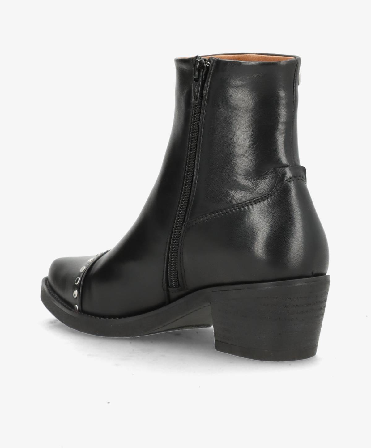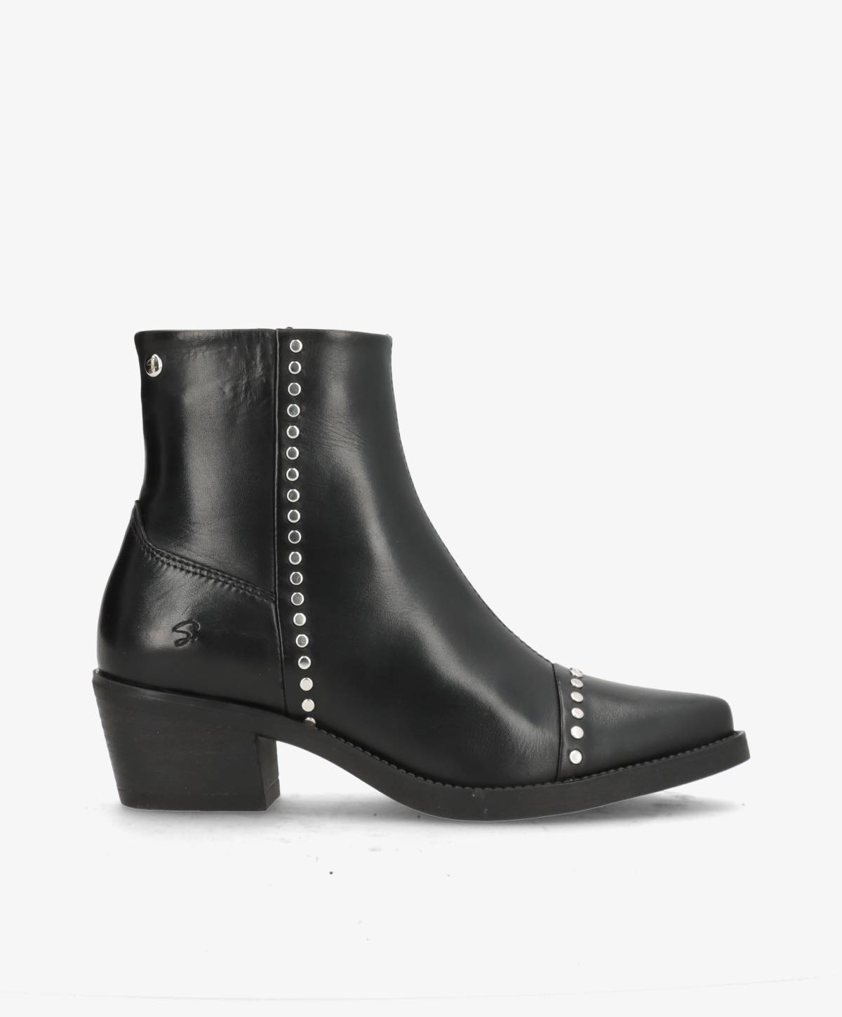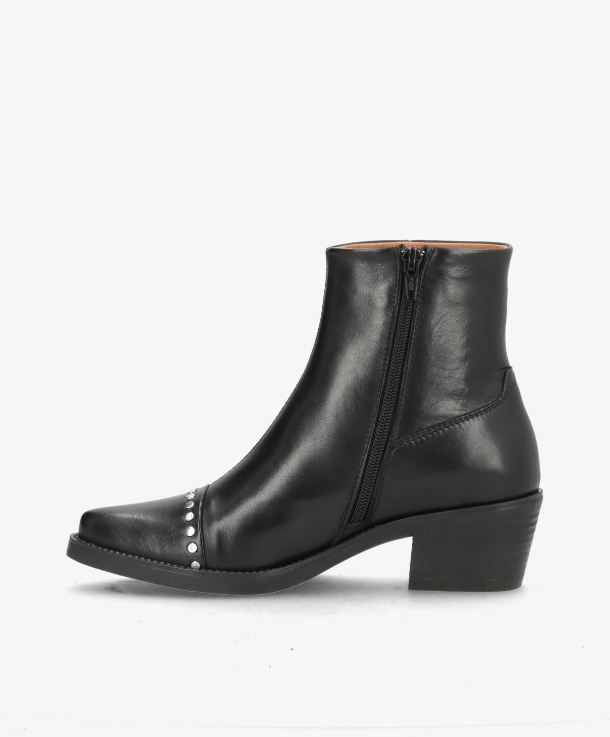 CARMINA er støvlen til dig, der vil skille dig ud med stil og attitude. Designet i blødt, sort læder og prydet med små sølvfarvede nitter, får denne støvle et elegant, men edgy udtryk. Den spidse snude og let hævede hæl giver et feminint og selvsikkert look, mens lynlåsen i siden sikrer, at støvlerne er nemme at tage af og på.