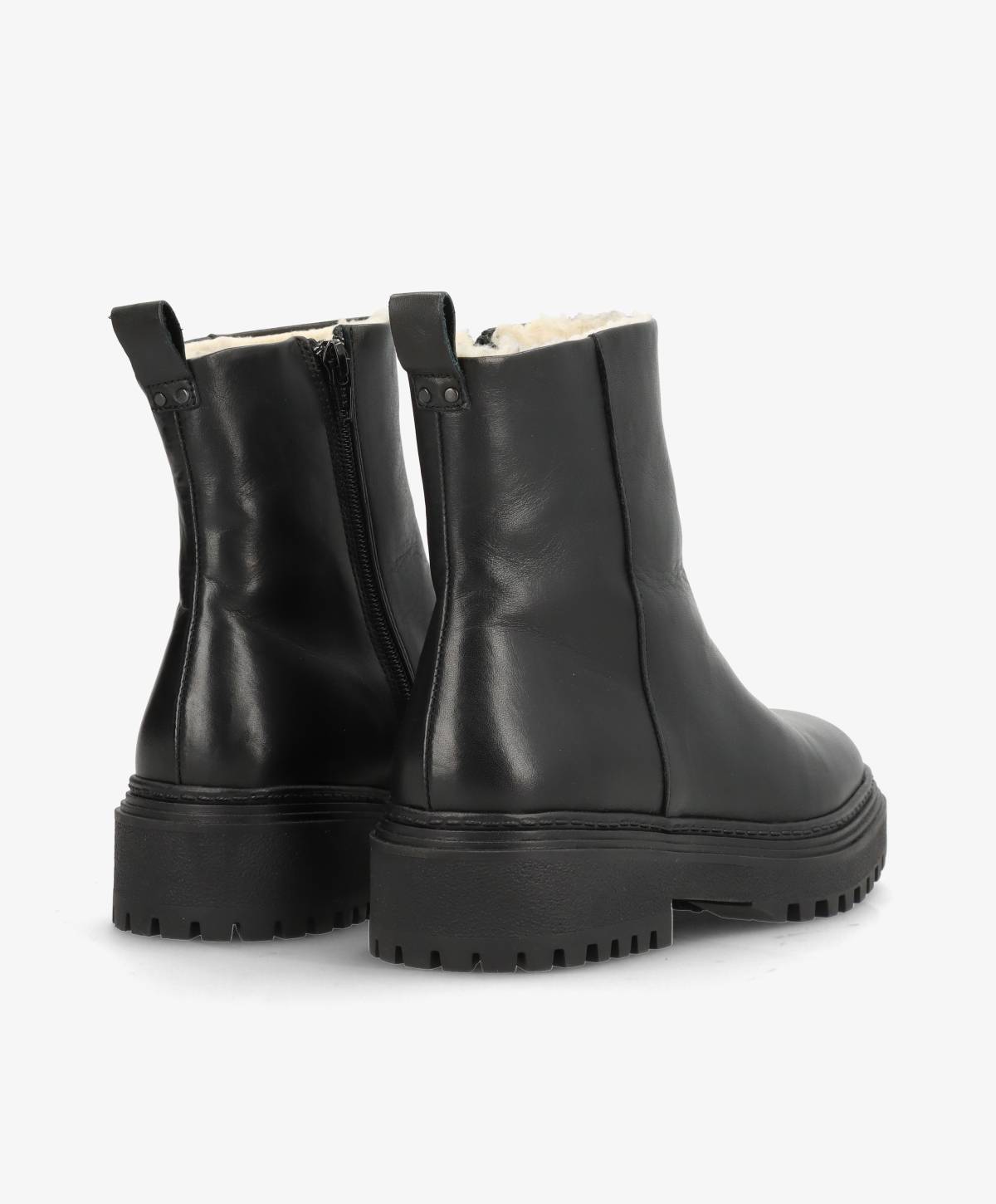 CASABLANCA med foer er den perfekte støvle til vinterens kolde dage. Designet i glat, sort læder og med et varmt foer indeni, holder denne støvle dig både stilet og komfortabel hele sæsonen. Den har en robust gummisål, der giver et solidt greb, uanset hvor du bevæger dig.