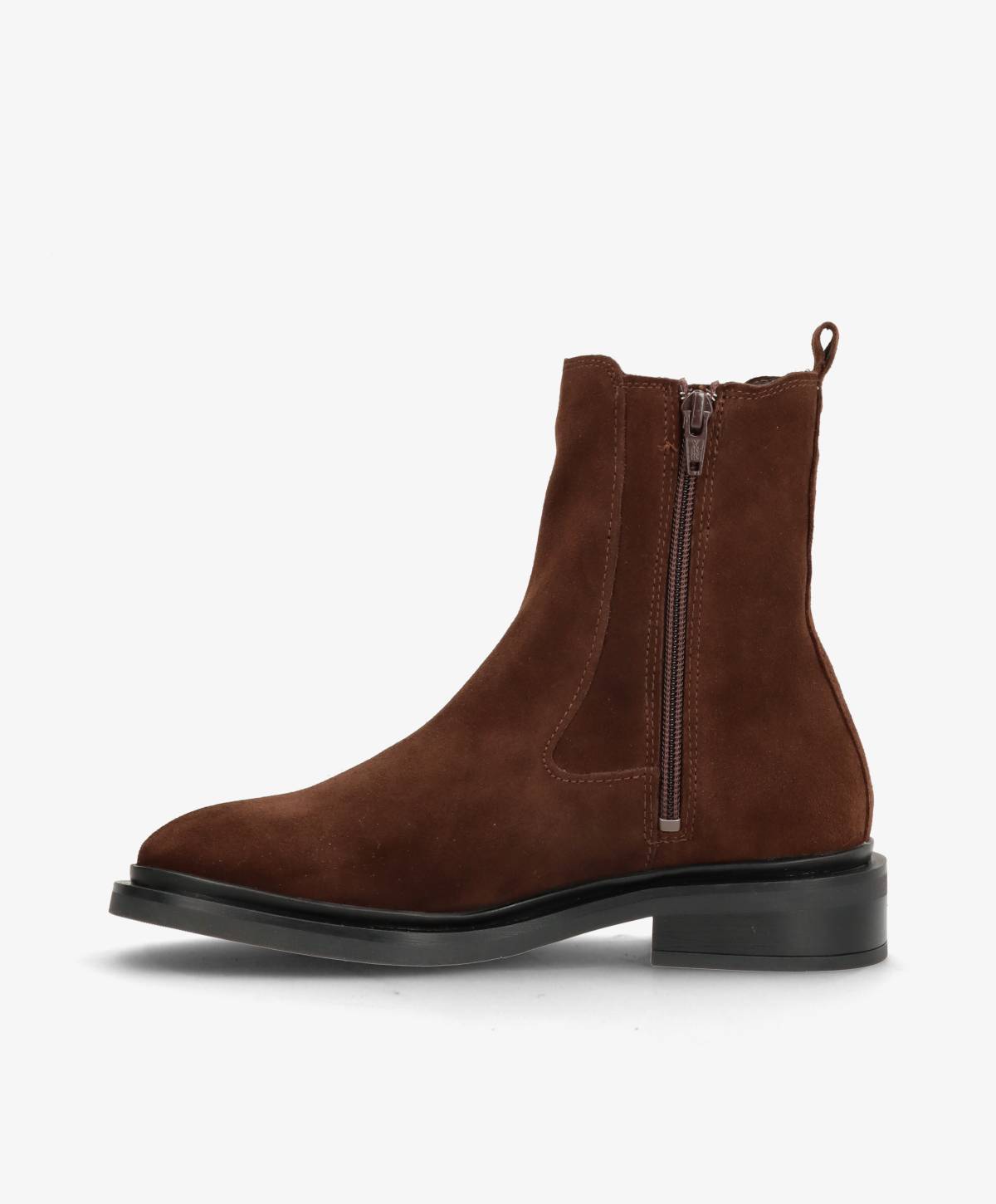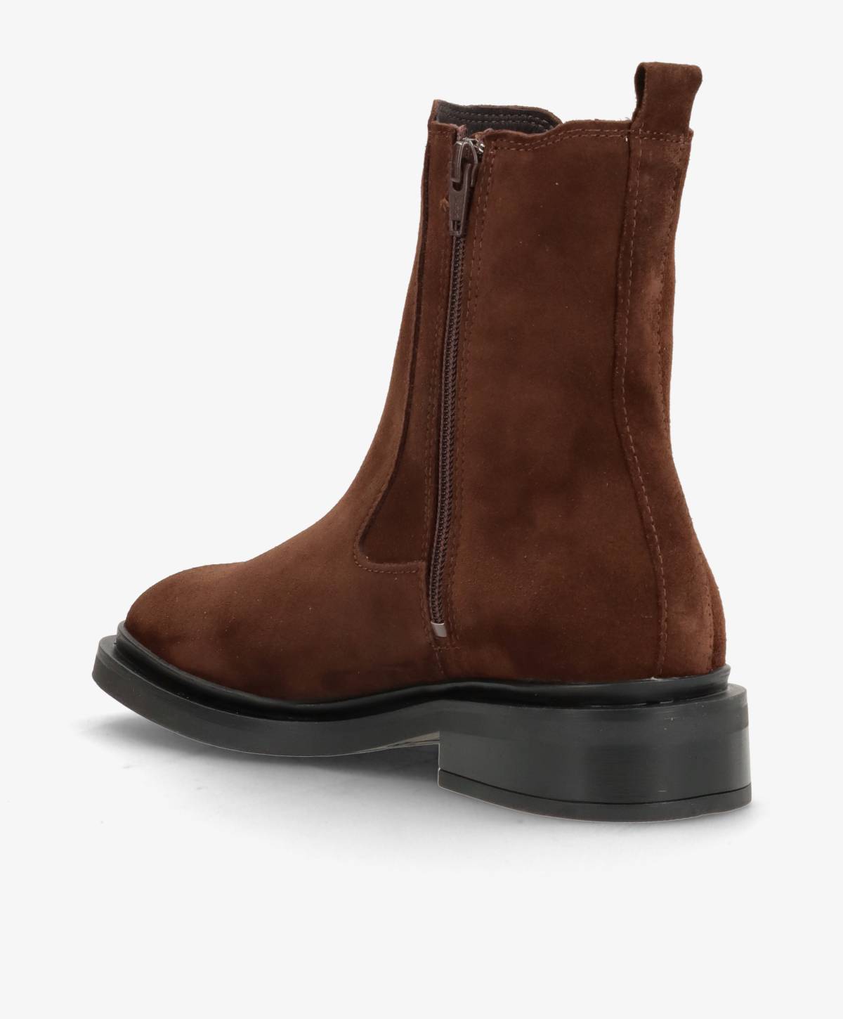 CATLEY SO i brun ruskind oil er en moderne fortolkning af den klassiske Chelsea-støvle. Det olierede ruskind giver støvlen et eksklusivt og blødt udtryk, mens den mørkebrune nuance tilfører varme og dybde til looket. Den elastiske sidepanel og praktiske lynlås gør den nem at tage af og på, samtidig med at den sidder komfortabelt omkring anklen.