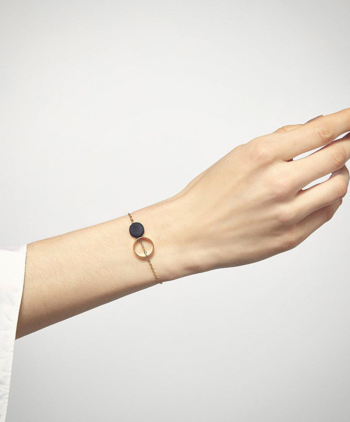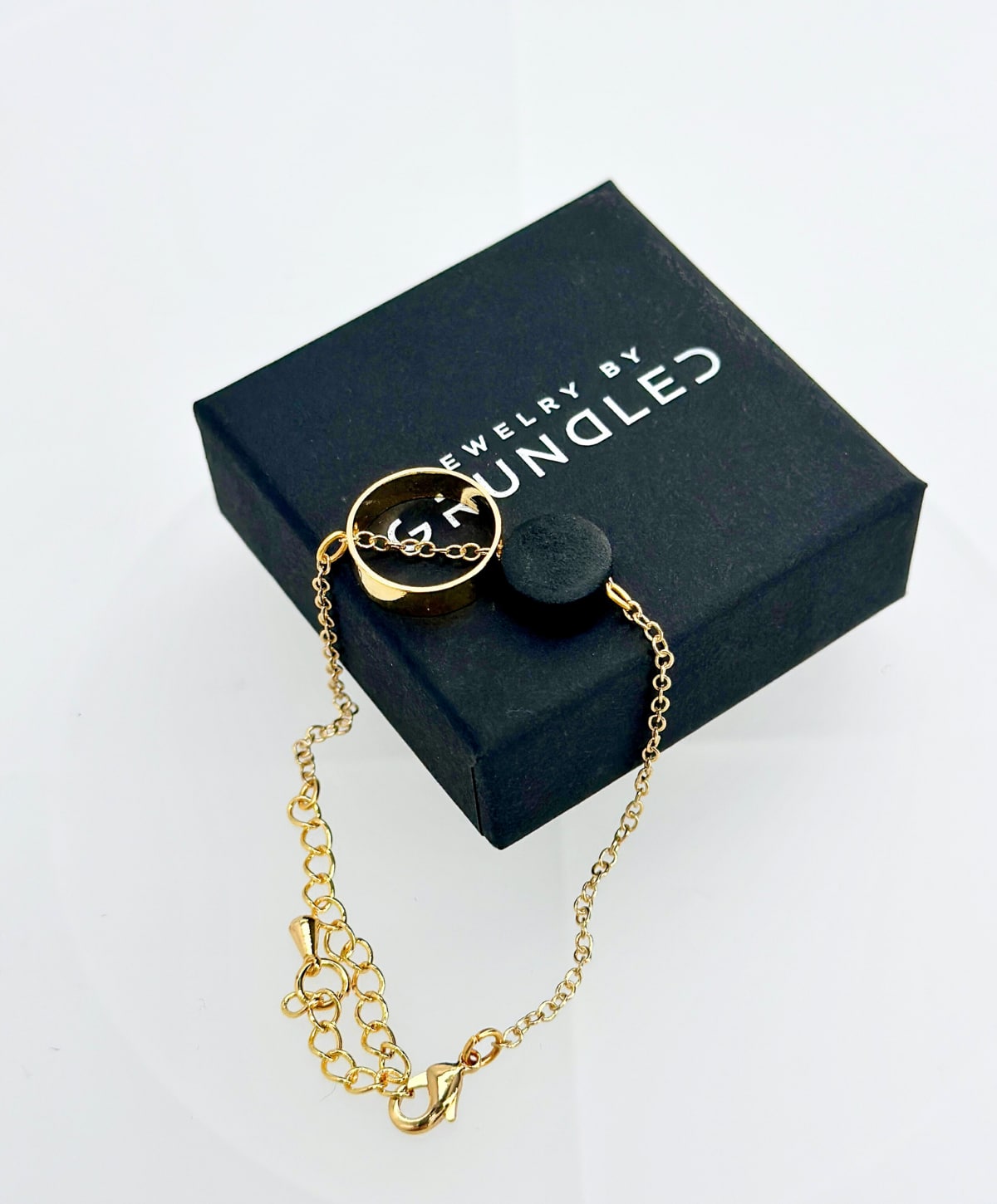 Elegant armbånd fra Grundled med en farverig detalje. Det flotte armbånd er lavet i 18K forgyldt messing og har en perle af farvet træ. Den forgyldte kæde lukkes bagtil med lås. Armbåndet har har forskellige låsemuligheder, så den kan tilpasses dit håndled. Den får et klassisk touch med den tidløse kæde og den simple, smukke cirkel.