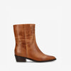 CONFIDENCE LOW i cognac læder er en stilfuld ankelstøvle, der kombinerer klassisk elegance med en moderne kant. Det varme cognacfarvede skind giver et eksklusivt udtryk, mens den enkle silhuet gør støvlen utrolig alsidig. Den lave hæl giver komfort og stabilitet, hvilket gør den til et oplagt valg både til hverdagsbrug og mere festlige looks.