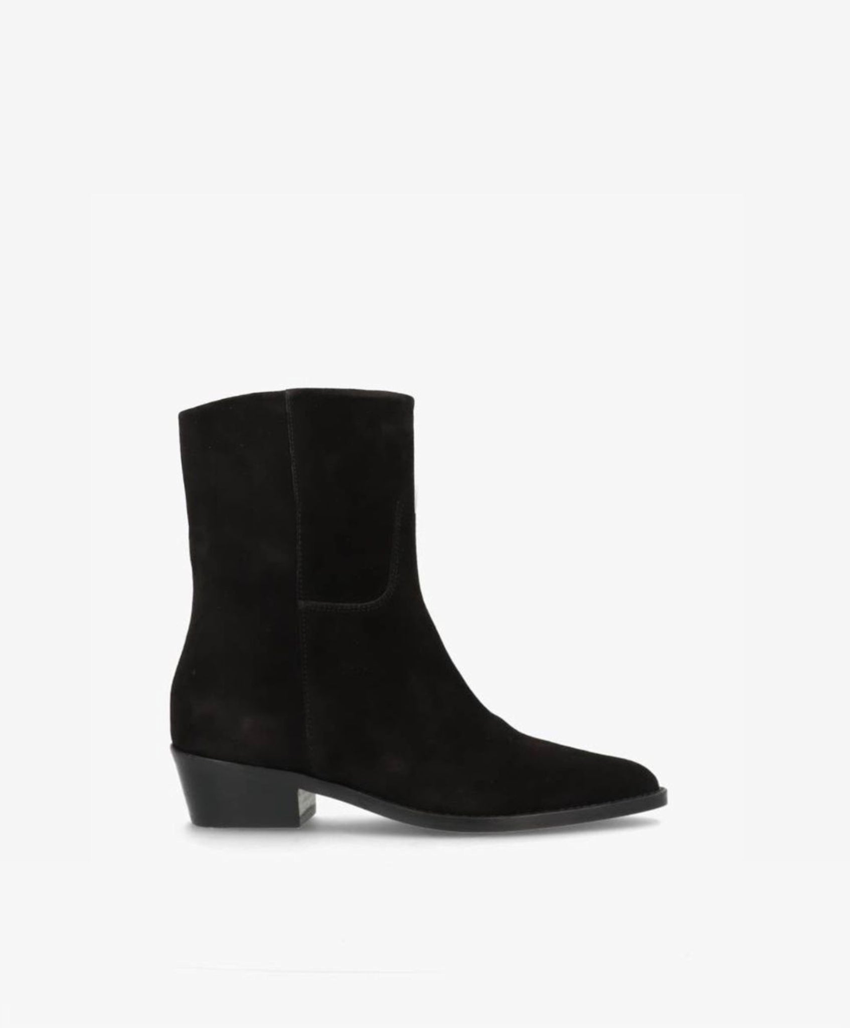 CONFIDENCE S low er en sofistikeret ankelstøvle i blødt sort ruskind, der forener enkelthed og elegance. Den rene silhuet og det matte ruskind giver et eksklusivt look, som gør støvlen til et oplagt valg både til hverdag og fest.