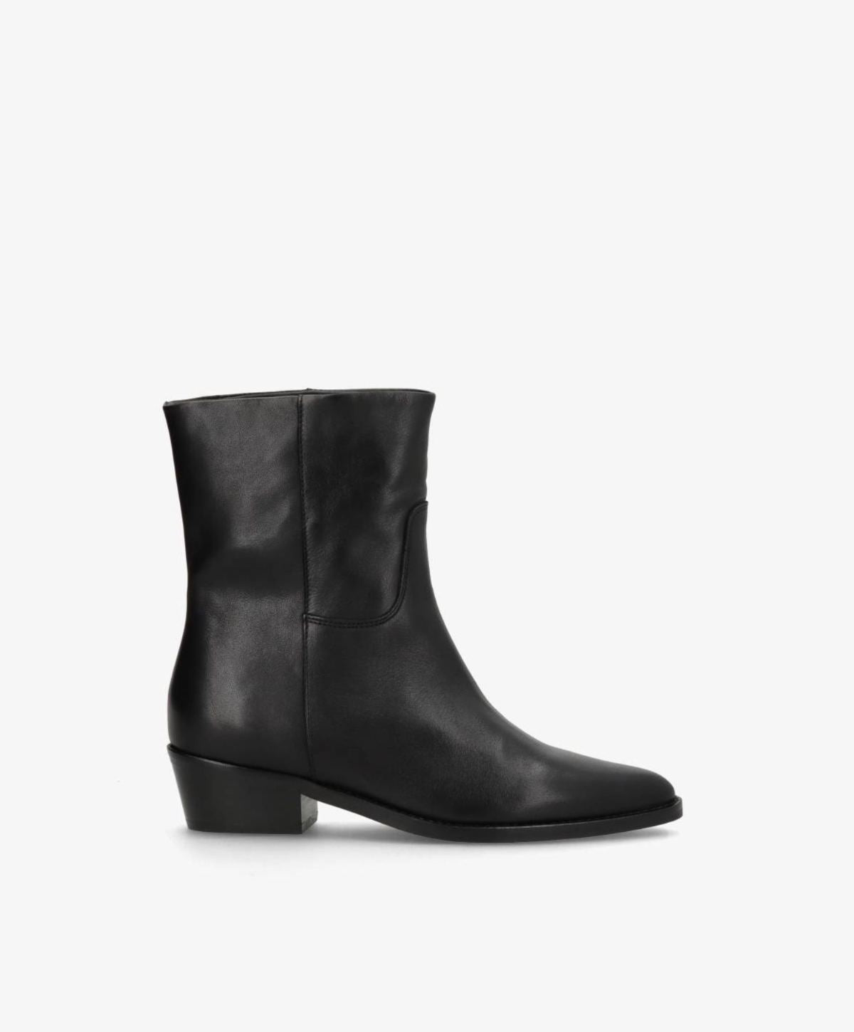 CONFIDENCE LOW i sort læder er en elegant ankelstøvle til den moderne kvinde. Det glatte skind giver et luksuriøst udtryk, mens den kortere silhuet gør støvlen nem at style til både hverdag og fest. Den lave hæl giver stabilitet og komfort, hvilket gør den ideel til at have på hele dagen.