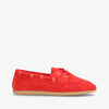 CORE S fra shoedesign copenhagen er en klassisk sejlersko med et friskt og feminint udtryk. Modellen er fremstillet i blødt rød ruskind, som giver et markant og stilfuldt look, der løfter ethvert outfit. De guldfarvede snørehuller og den klassiske snørelukning understreger det maritime design, mens den lyse gummisål skaber en elegant kontrast og et let helhedsindtryk.