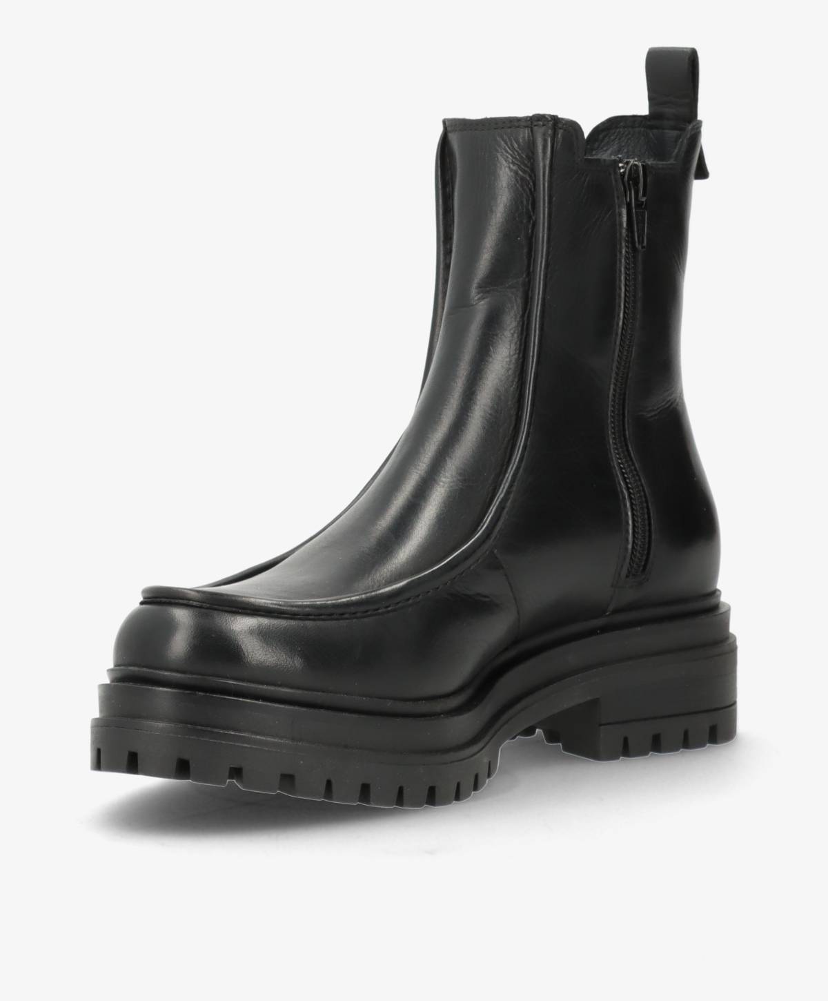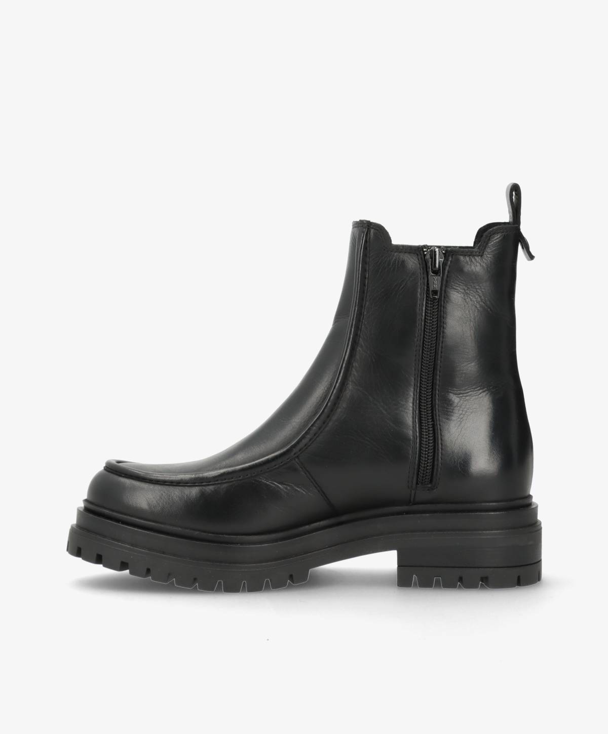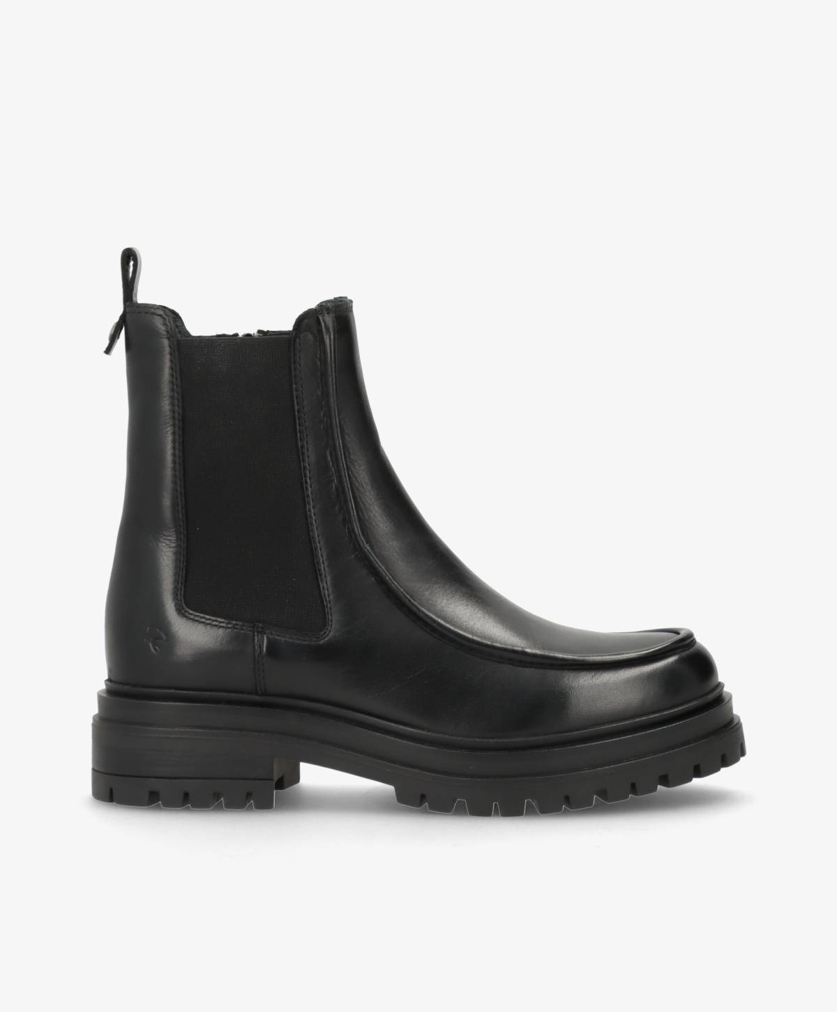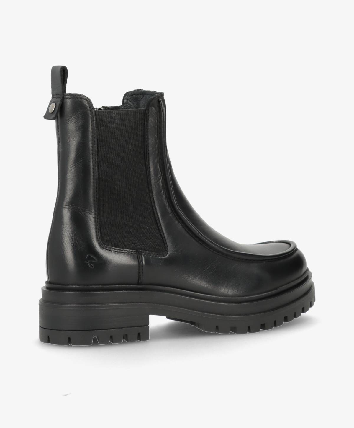 Med DAGONA får du en sofistikeret chelsea inspireret støvle, designet i blødt sort læder og med et moderne udtryk. Den solide ydersål giver et cool, afslappet look og sikrer samtidig godt greb til hverdagen. Den klassiske silhuet er kombineret med et stilrent design, der gør støvlen til et oplagt valg i både hverdagen og til mere dressed-up anledninger.