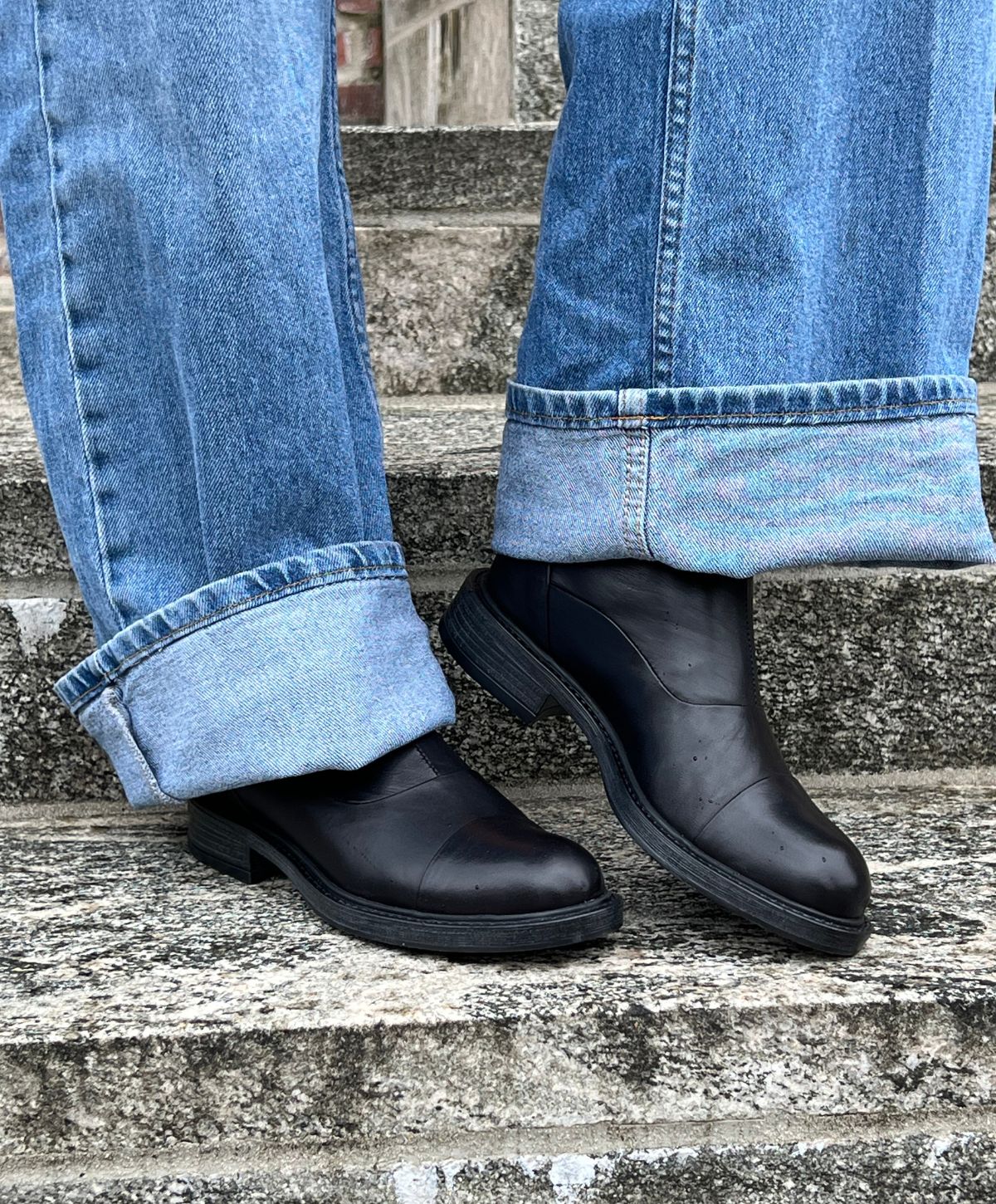 DAHLIA - Dame Ankelstøvle - Sort læder