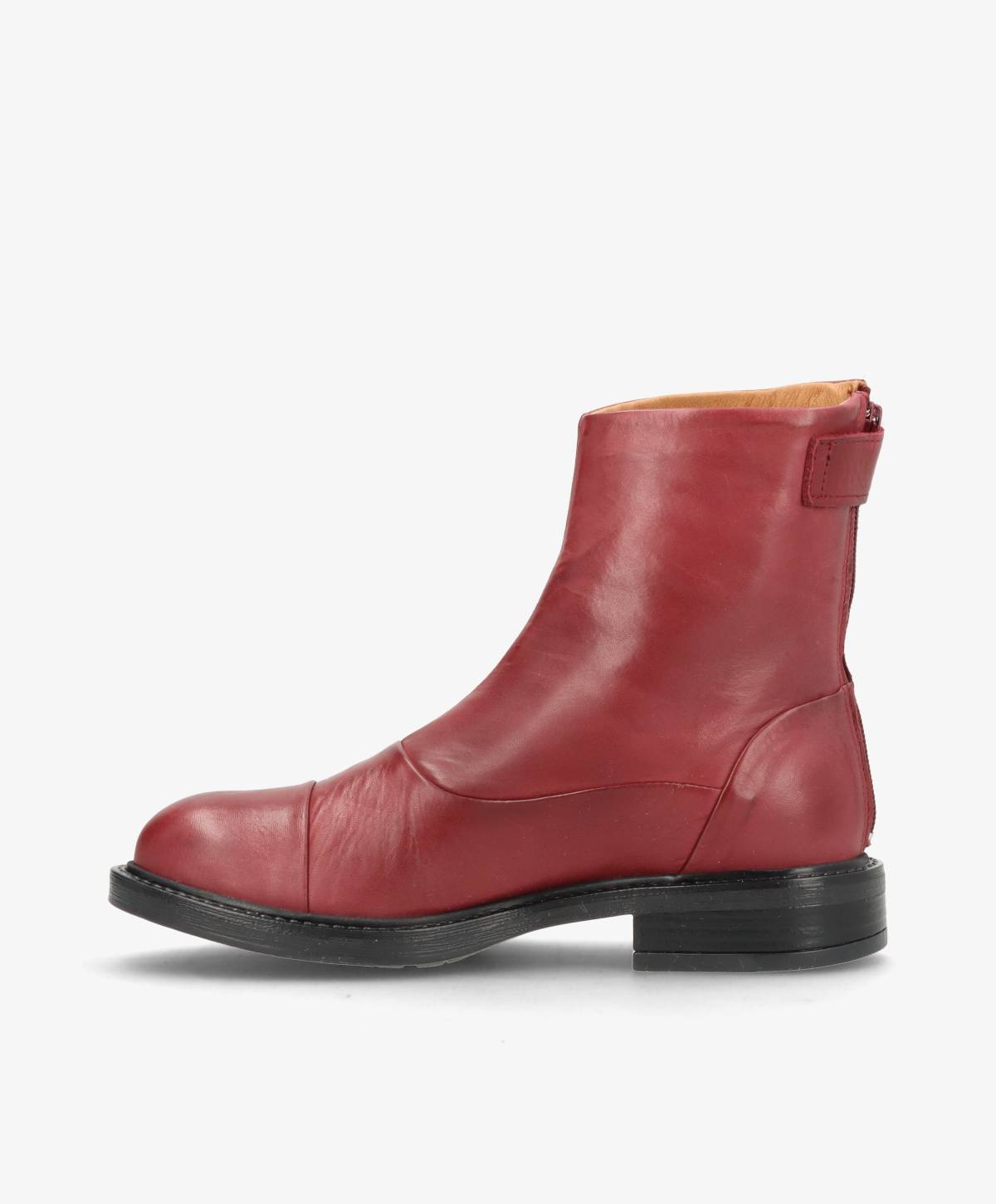 DAHLIA i bordeaux læder er et stilfuldt statement fra Shoedesign Copenhagen – en håndlavet støvle, der kombinerer eksklusiv enkelhed med kant. Det bløde, glatte læder skaber et feminint udtryk, mens den diskrete søm over snuden og den flade sål giver et elegant, men råt look. Den synlige lynlås bagpå er både praktisk og karakterfuld og afsluttes med en trykknap i antik metal.