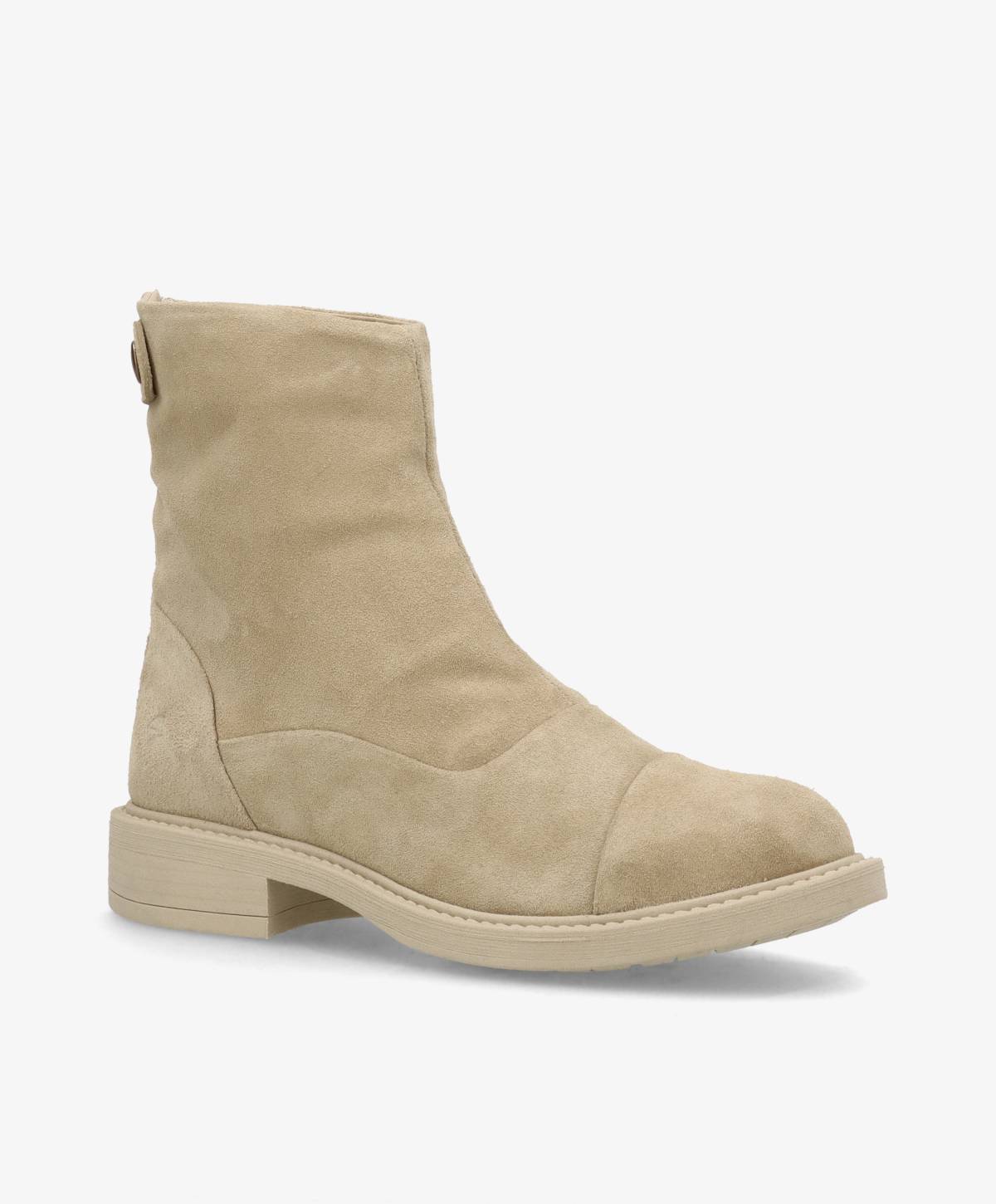 Den klassiske Dahlia støvle fra Shoedesign Copenhagen i et lækkert ruskind. Støvlerne har en flot, offwhite farve der giver et tidløst touch. De lukkes forsvarligt med lynlås og trykknap bagtil, og sidder derudover rigtig godt på foden. Hælen har et kontrastlook, der giver lidt ekstra kant til designet og samtidig et moderne indspark. De lækre støvler kan styles på et væld af måder og bliver kun bedre med tiden, da de er lavet i et smørblødt ruskind.