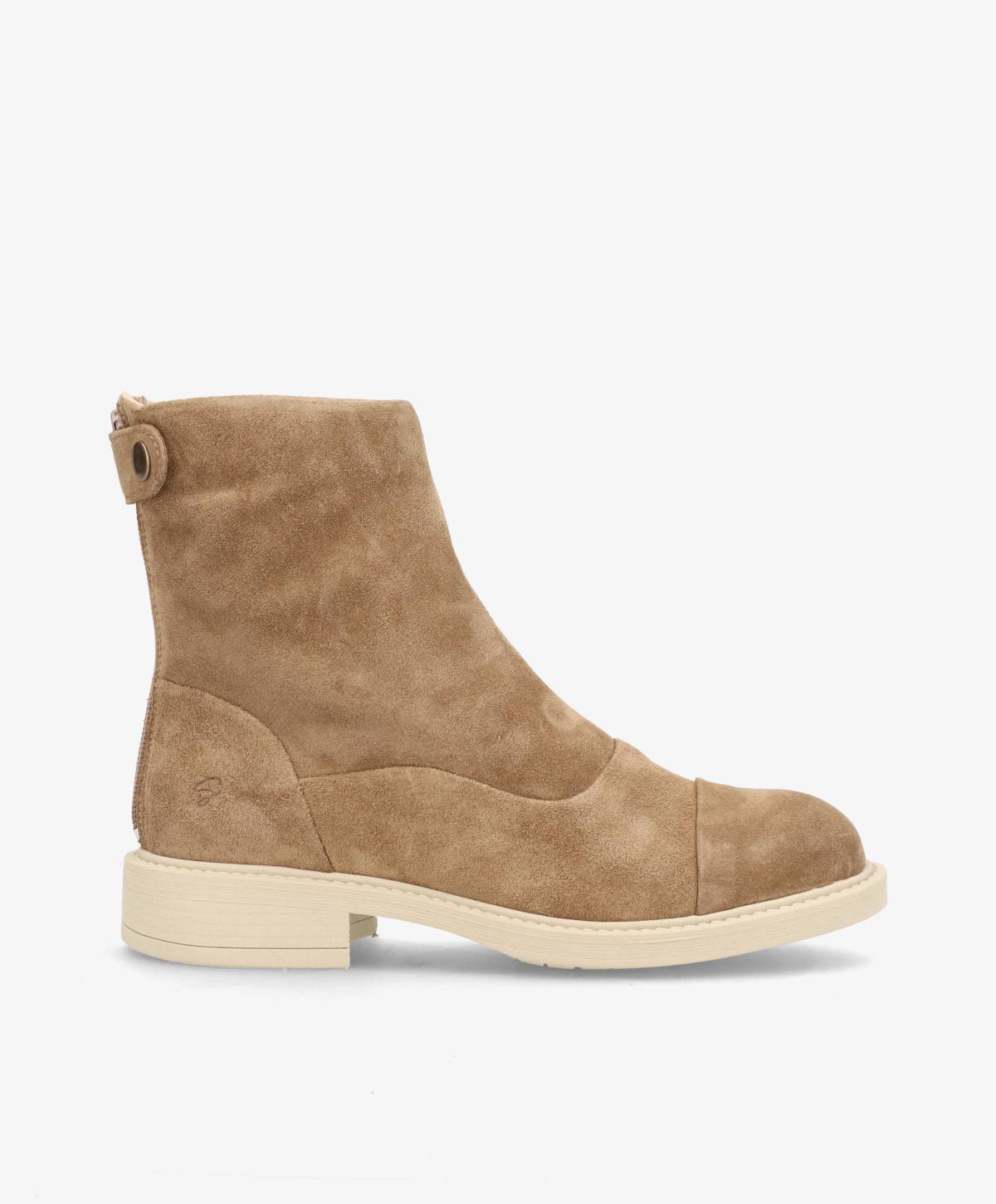 Den klassiske Dahlia støvle fra Shoedesign Copenhagen i et lækkert ruskind. Støvlerne har en flot, beige farve der giver et tidløst touch. De lukkes forsvarligt med lynlås og trykknap bagtil, og sidder derudover rigtig godt på foden. Hælen har et kontrastlook, der giver lidt ekstra kant til designet og samtidig et moderne indspark. De lækre støvler kan styles på et væld af måder og bliver kun bedre med tiden, da de er lavet i et smørblødt ruskind.