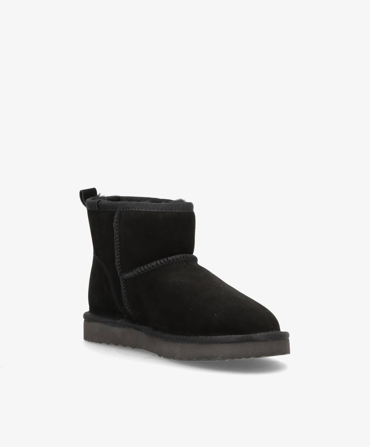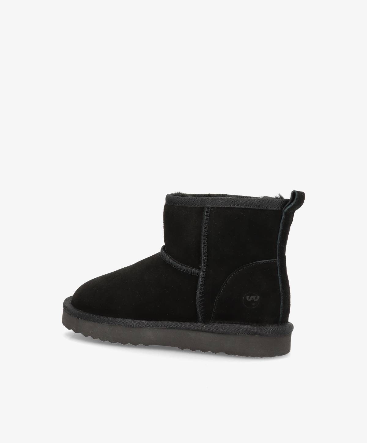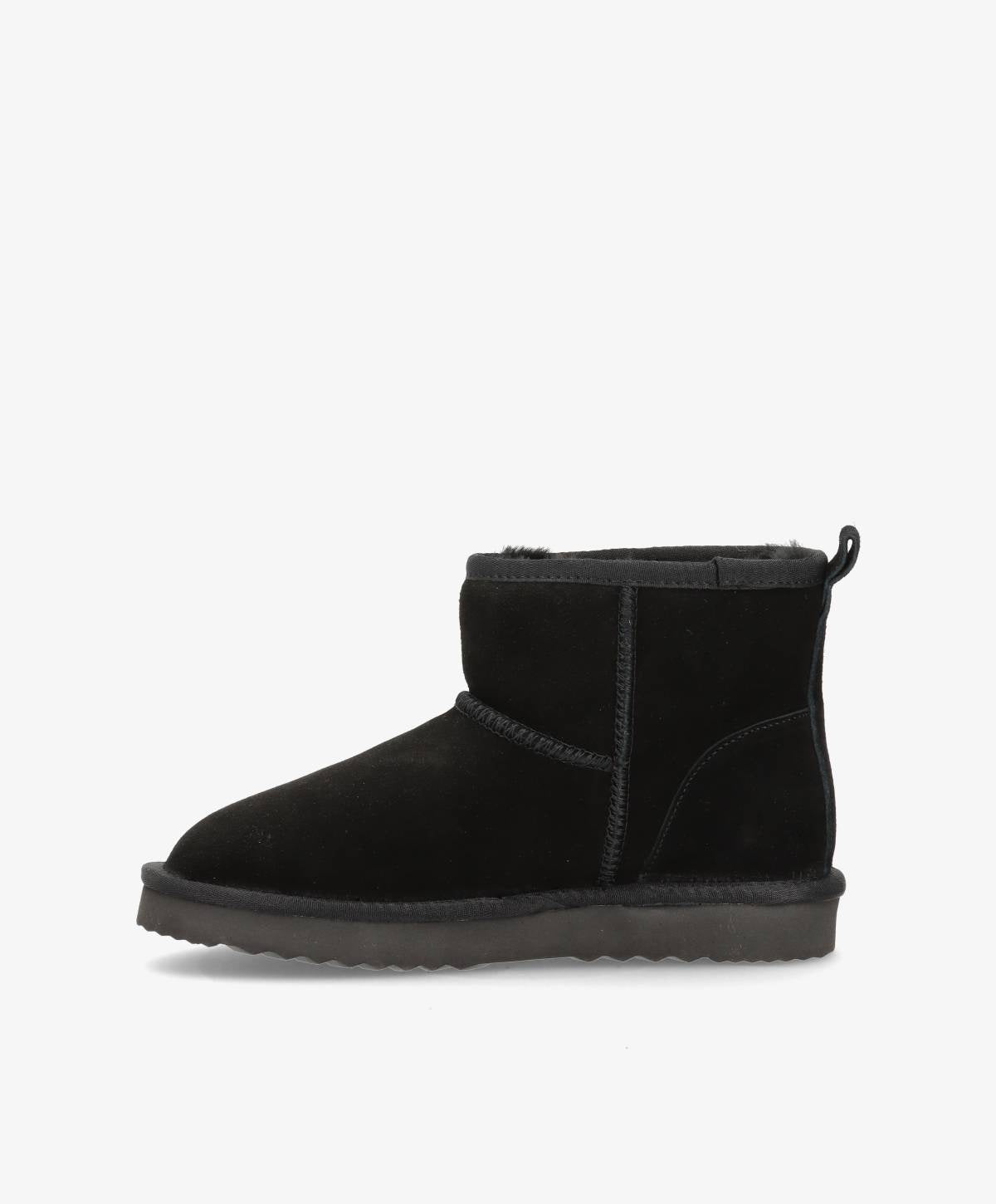 De lækreste bamsestøvler i en klassisk sort - perfekte til efterårsuniformen. De bløde støvler er lavet i et flot ruskind og har en mellemhøj sål, der er super komfortabel. Støvlerne har ægte uld foring, som holder foden varm og giver ekstra komfort. De er nemme at påføre og er super komfortable, så de roligt kan bæres hele dagen. De fine bamsestøvler har desuden tydelige syninger, som bryder det rene design lidt.