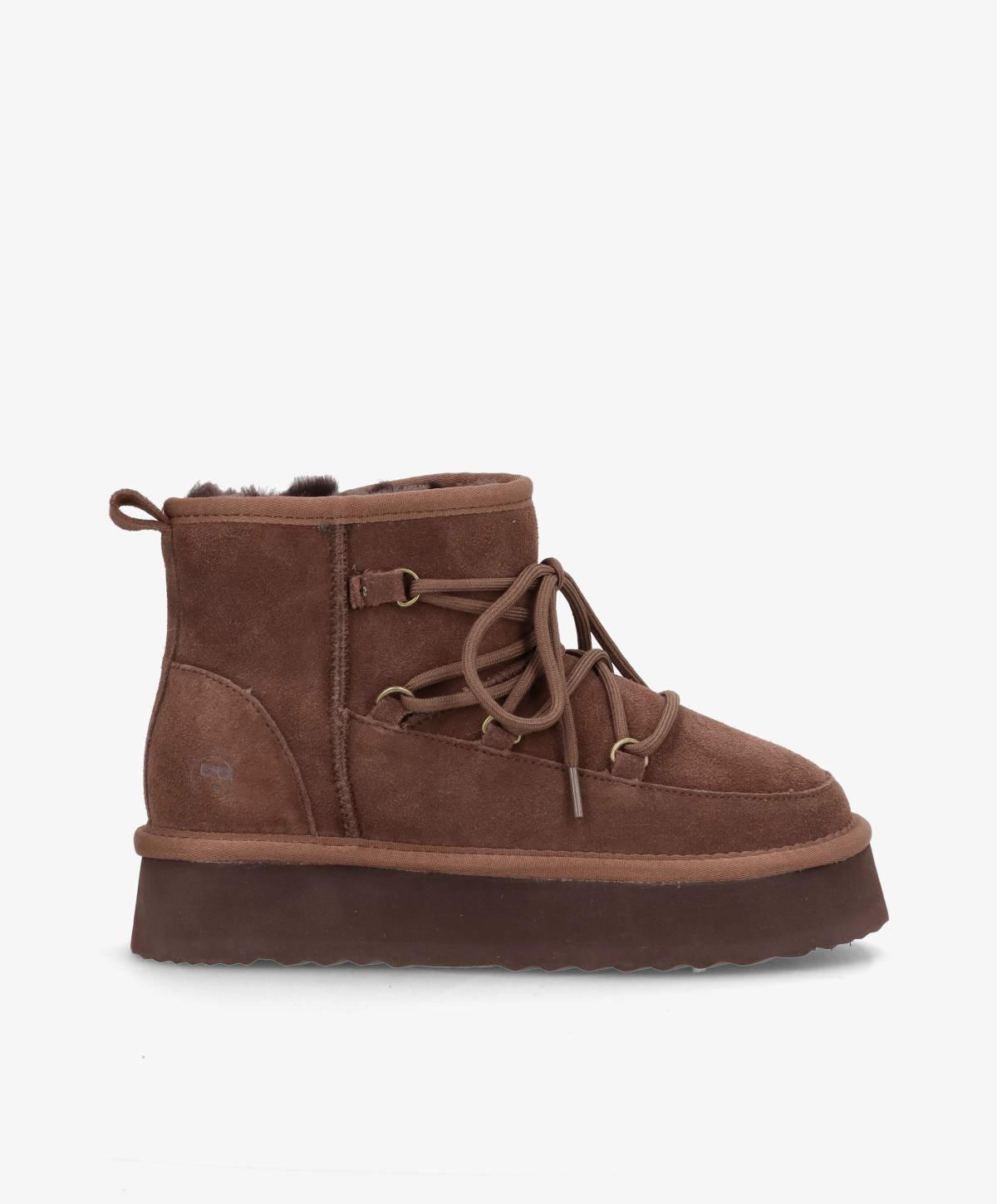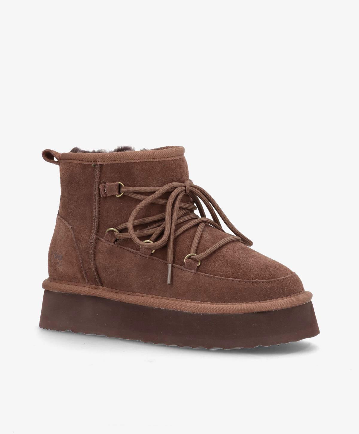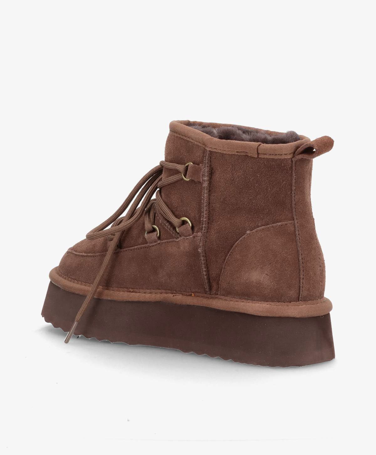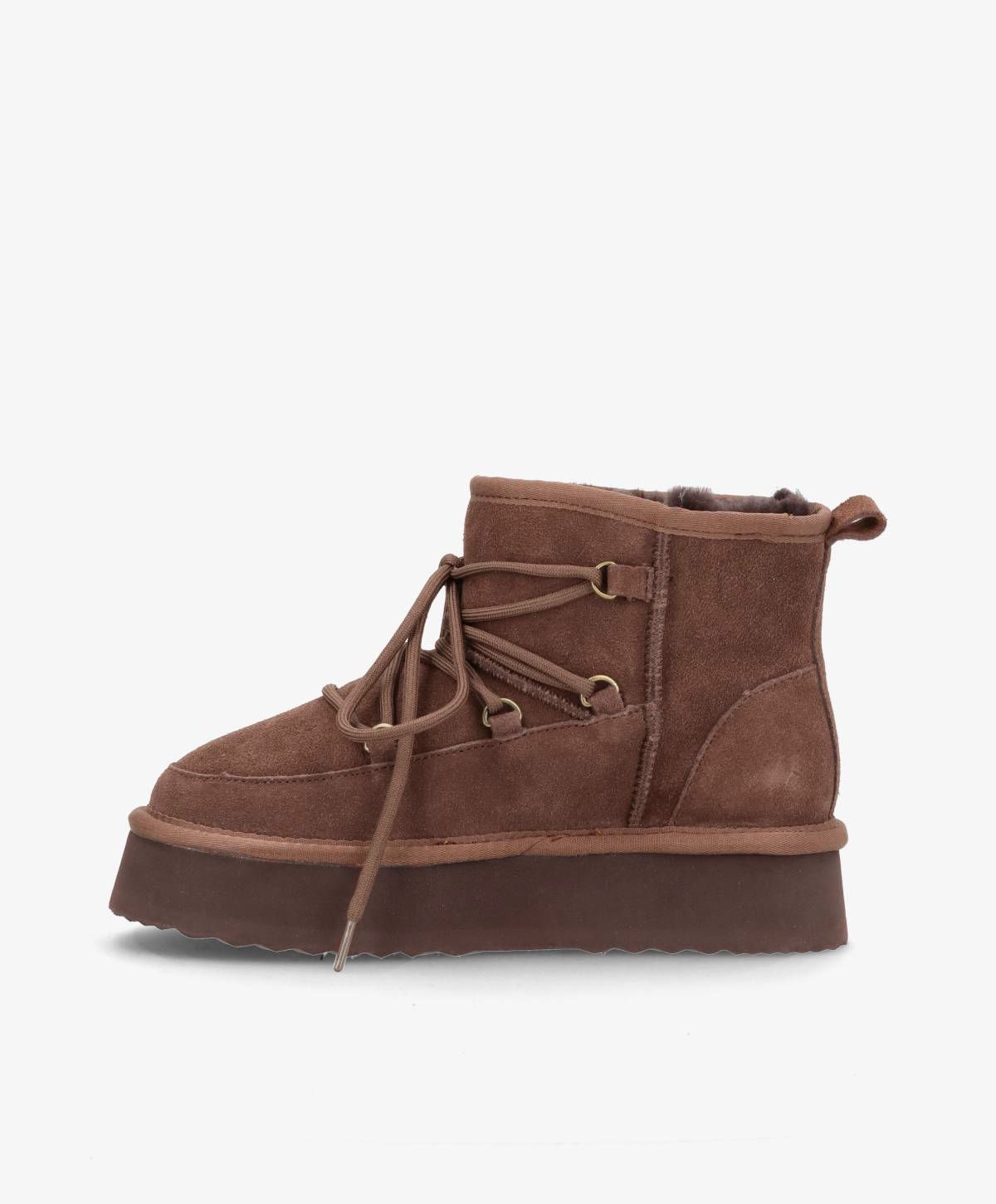 DUMBLE XL LACE i ruskind er din perfekte go-to dette efterår og vinteren over! Med et lækkert, blødt ruskindsmateriale og en inderside foret med varmt fleece, holder denne støvle dig både stilfuld og komfortabel gennem de kolde måneder. De brede snørebånd og den høje, kraftige sål giver et ungt og moderne look, mens de gyldne metaløjer tilføjer et eksklusivt touch.