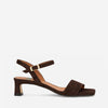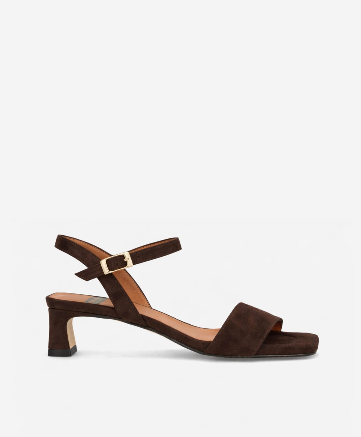 EMBRACE fra phenumb copenhagen i mørkebrun ruskind er en elegant og eksklusiv sandal med hæl, der kombinerer et feminint udtryk med moderne minimalisme. Den brede forrem giver et rent og stilfuldt look, mens den fine, justerbare ankelrem smyger sig om foden og sikrer en smuk og stabil pasform. Den dybe mørkebrune nuance tilfører varme og karakter og gør sandalen perfekt til både hverdagsbrug og mere festlige anledninger.