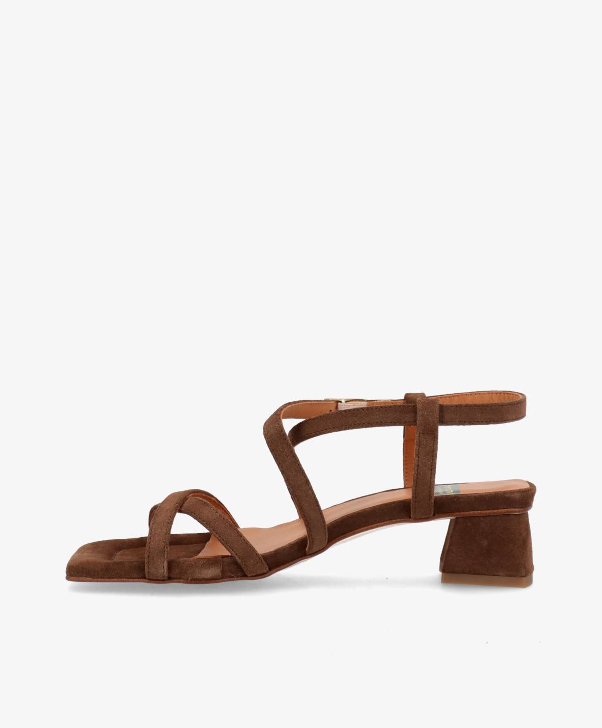 ESTEEM fra phenumb copenhagen i mørkebrun ruskind kombinerer et sofistikeret udtryk med en mere afslappet, feminin silhuet. De elegante, krydsede forremme giver sandalen et let og moderne look, mens den justerbare ankelrem smyger sig flot om anklen og sikrer en stabil og behagelig pasform. Den dybe brune nuance tilfører varme og eksklusivitet til ethvert outfit.