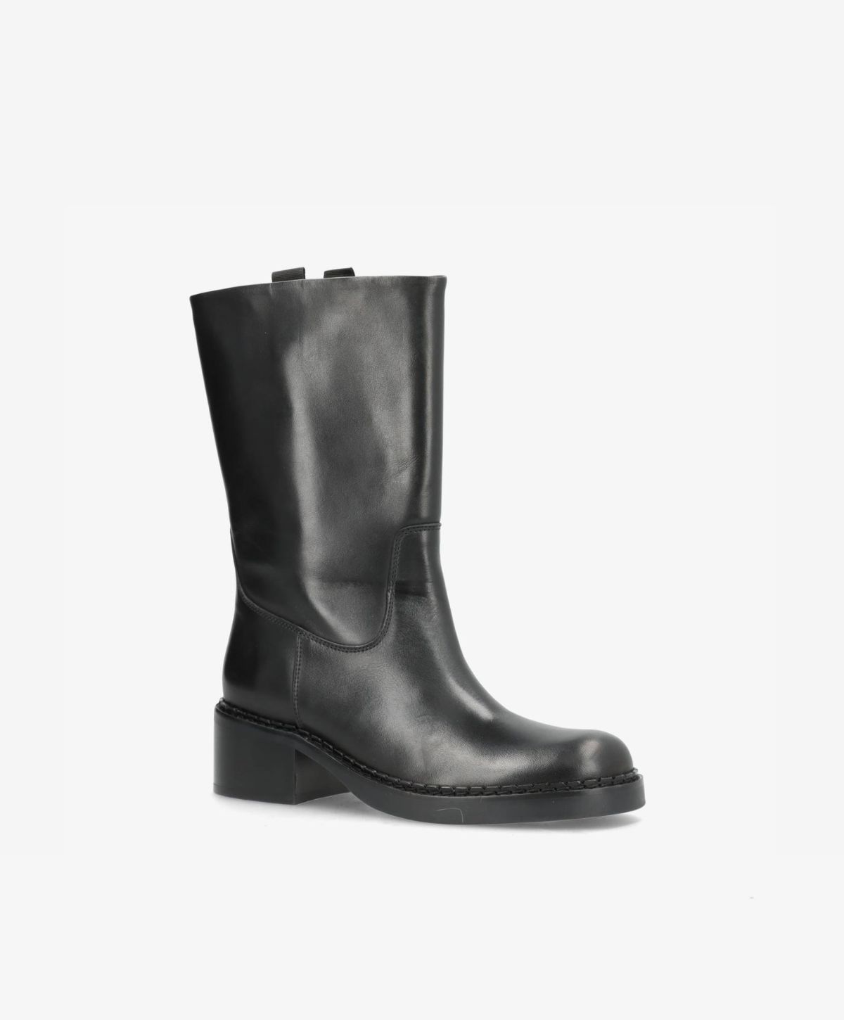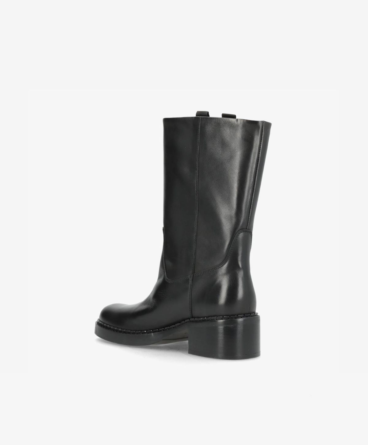 EXPOSED i sort læder er den perfekte støvle til dig, der ønsker minimalistisk elegance og høj komfort i ét og samme design. Det bløde, glatte læder skaber et eksklusivt look, mens den solide blokhæl og rundede snude gør støvlen både praktisk og stilfuld til hverdagsbrug. Den synlige randsyning tilføjer et cool twist og understreger den høje kvalitet, der kendetegner phenumb copenhagen.