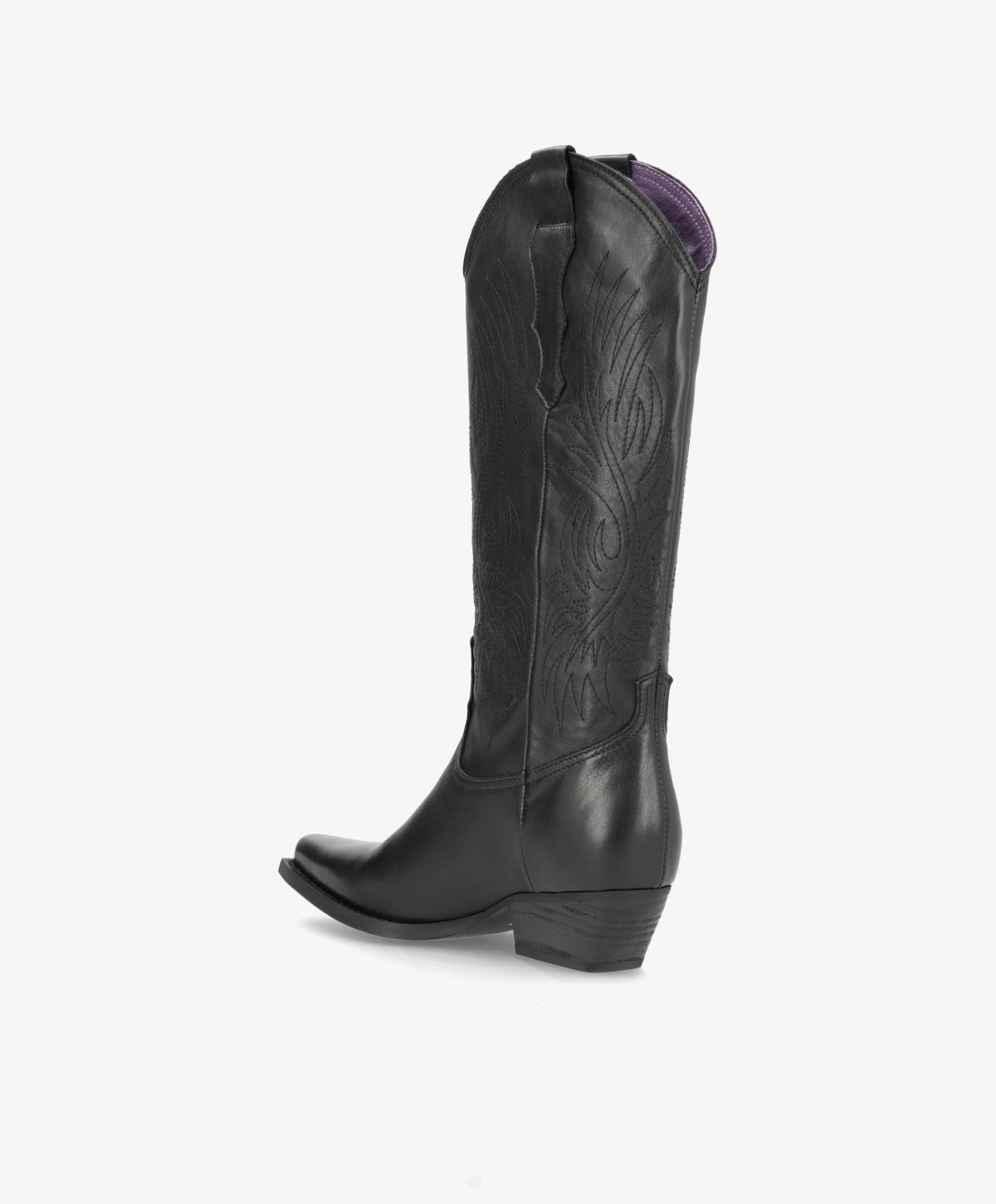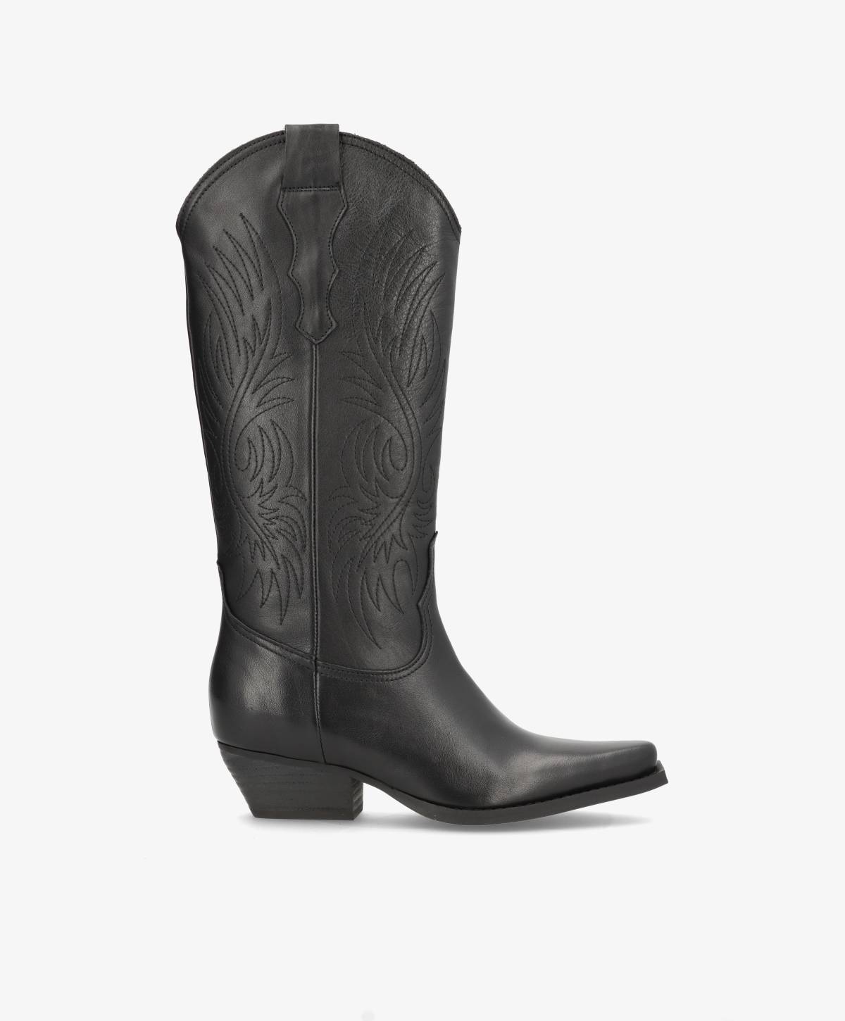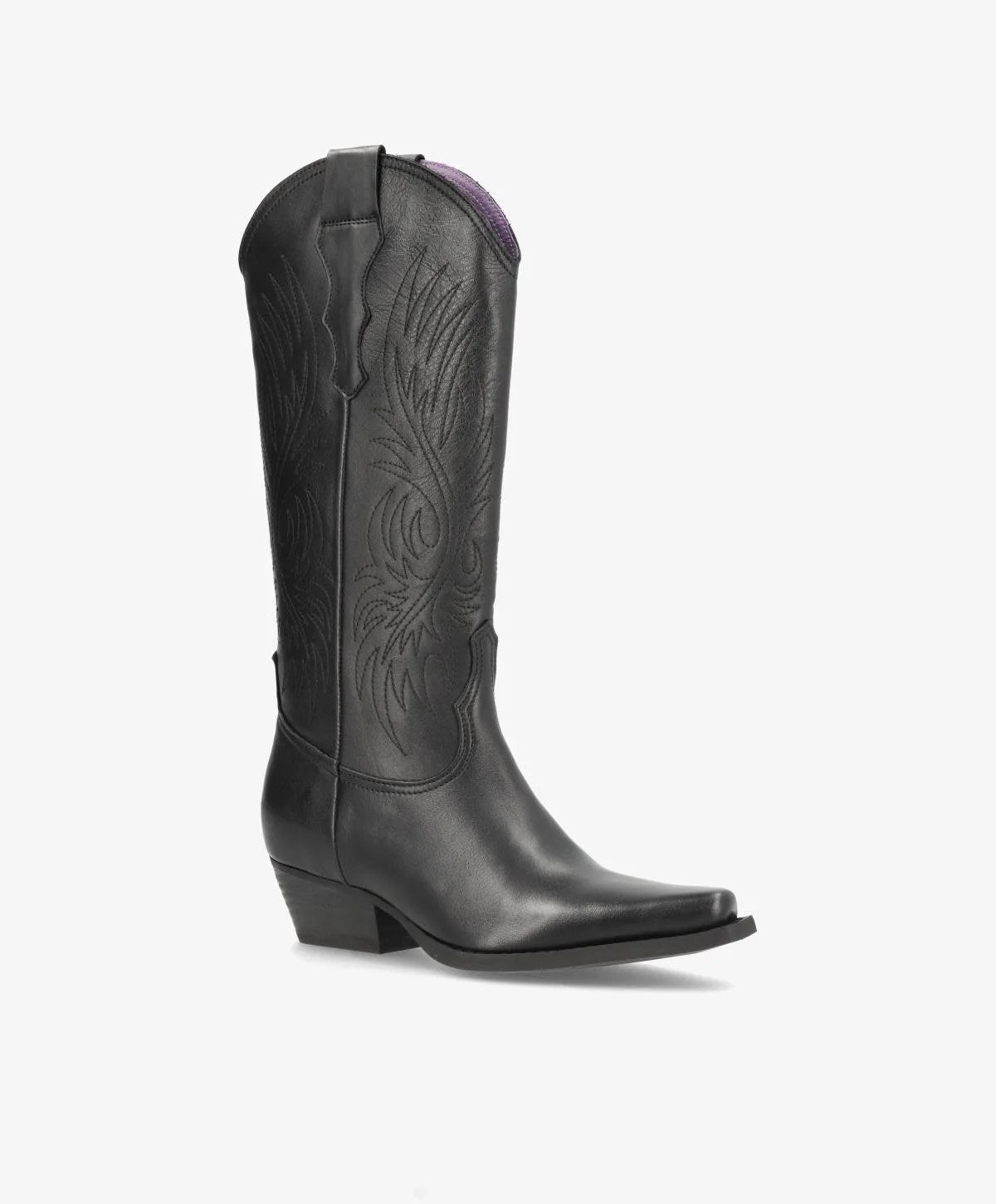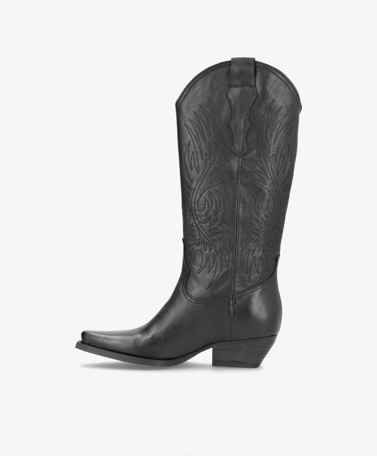 Denne FRANKIE western støvle er et absolut musthave. Støvlen er i 100% læder og har nogle velovervejede detaljer, som giver den et cool look. Denne støvle kan spice ethvert outfit op. Støvlen har en skaftehøjde på ca. 34,5 cm og en hæl på 4,8 cm.