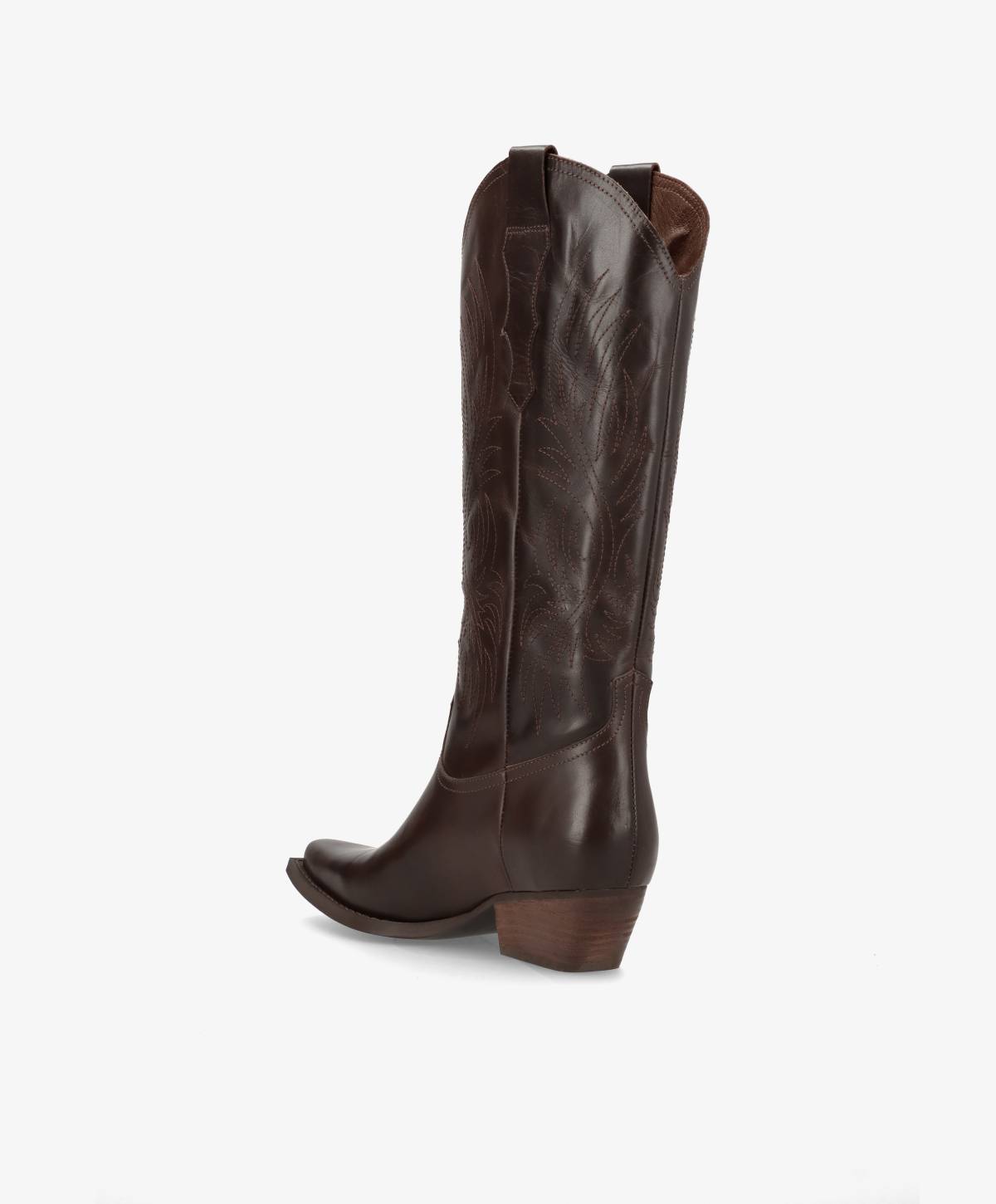 Mød dit nyeste phenumb musthave; Frankie. De flotte cowboyboots er indbegrebet af cool elegance. Frankie er lavet i et lækkert, mørkebrunt skind som har et tidløst look. Støvlerne er nemme at påføre, da skaftet er rummeligt, hvilket også gør, at de er super komfortable. Der er tydelige syninger på støvlerne, som er med til at understrege det klassiske westernlook. Derudover har de en spids snude og en lille hæl på knap 5 cm, som løfter uden at gå på kompromis med komforten. Brug de lækre boots med en kjole for et kontrastfyldt look eller skab din helt egen stil.