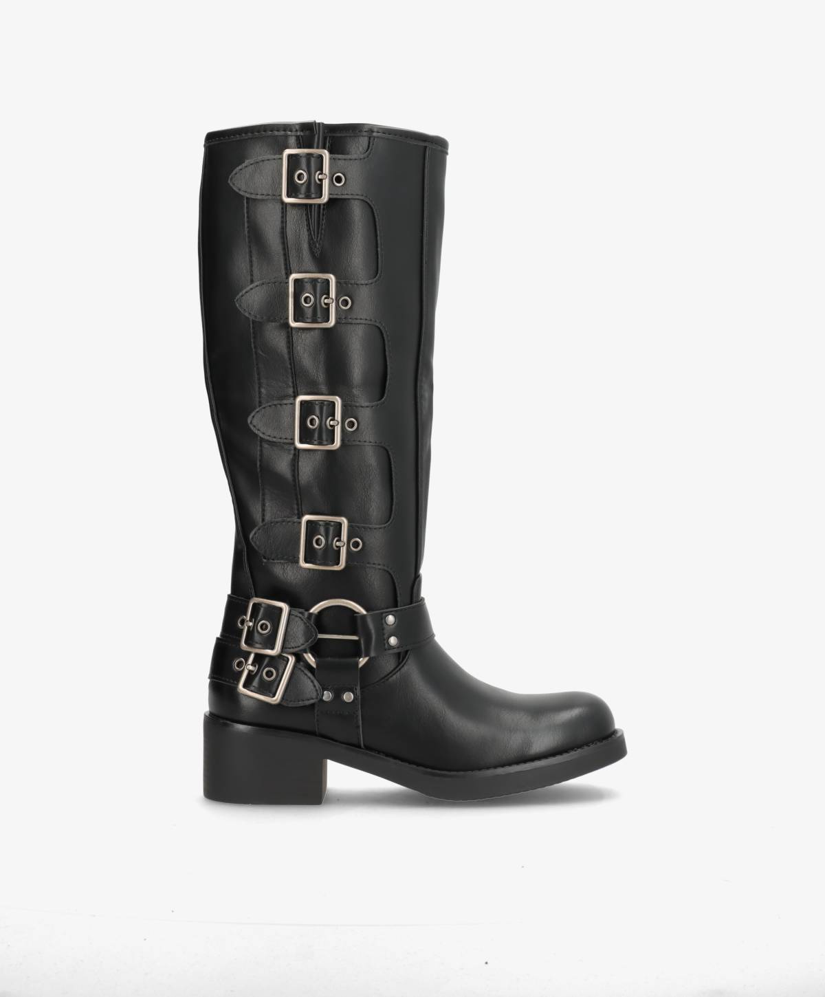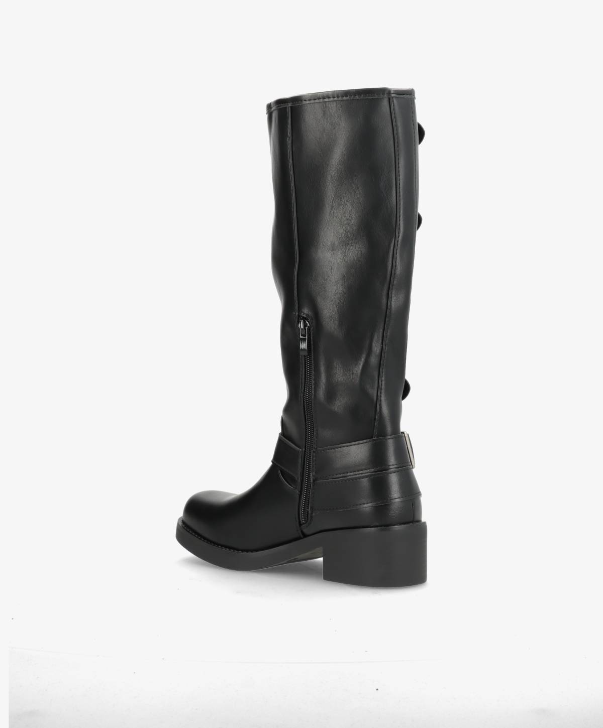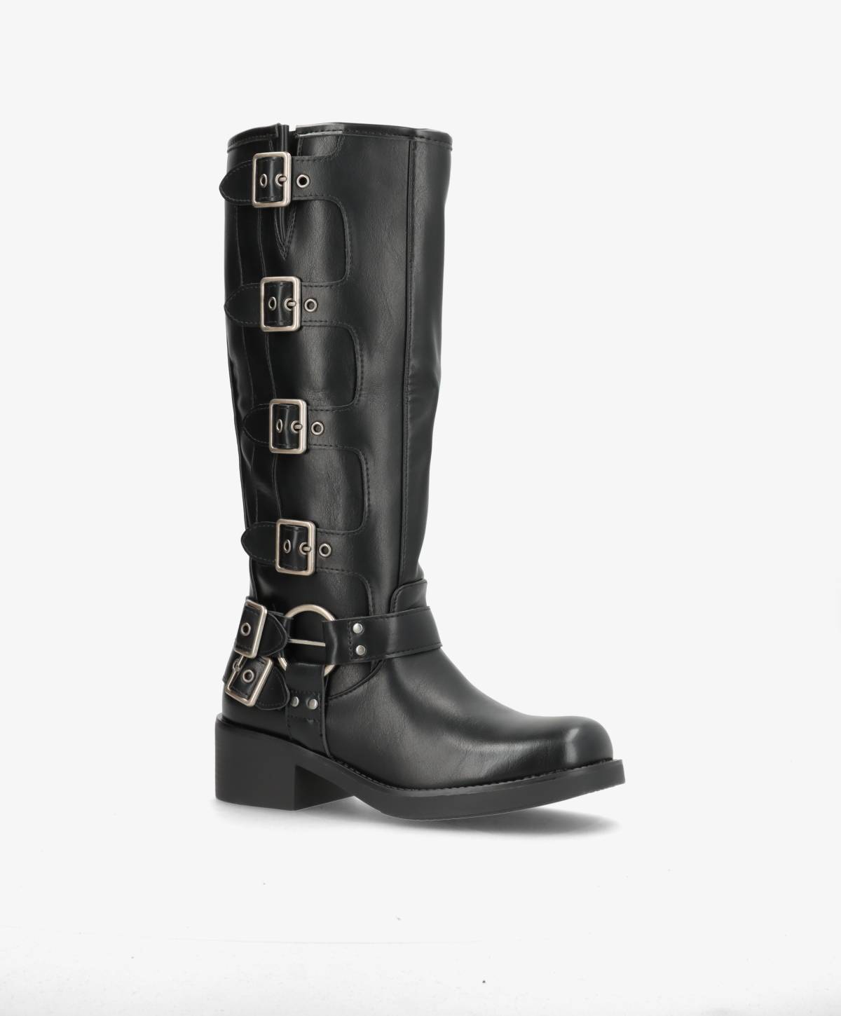 Denne sorte biker boot fra Havanna Shoes er det perfekte valg for dem, der ønsker at kombinere stil og komfort i et moderne design. Støvlen er udført i slidstærkt kunstlæder, der sikrer både holdbarhed og et tidløst udseende. Med sine markante spænder og dekorative stropper tilføjer støvlen et råt, men samtidig sofistikeret touch til ethvert outfit. Den robuste sål giver god støtte, mens lynlåsen på siden gør det nemt at tage støvlen af og på. Ideel til både hverdag og mere formelle anledninger, hvor du ønsker at skille dig ud med et stilfuldt statement. Denne støvle fåes også i brun.