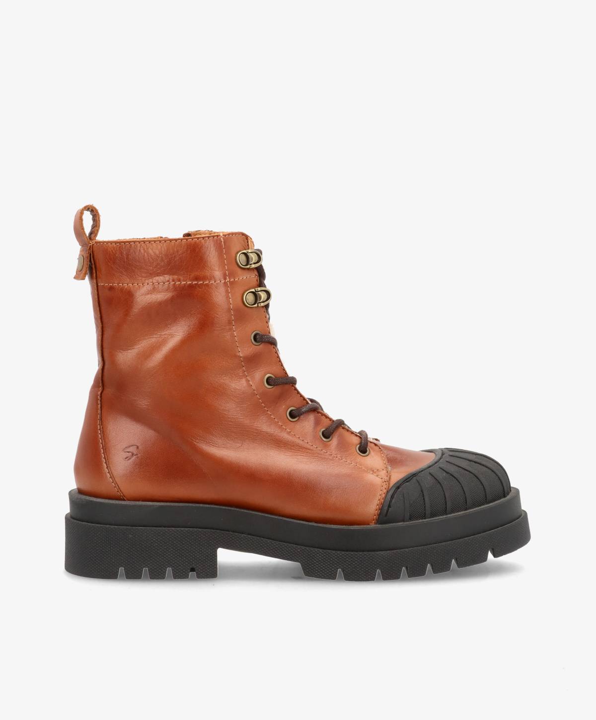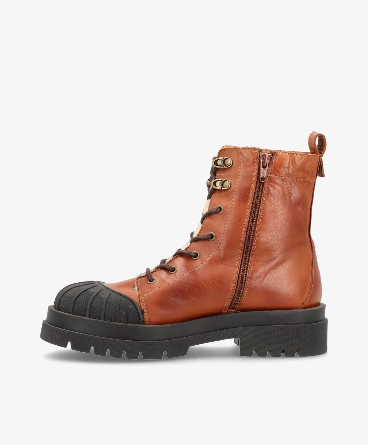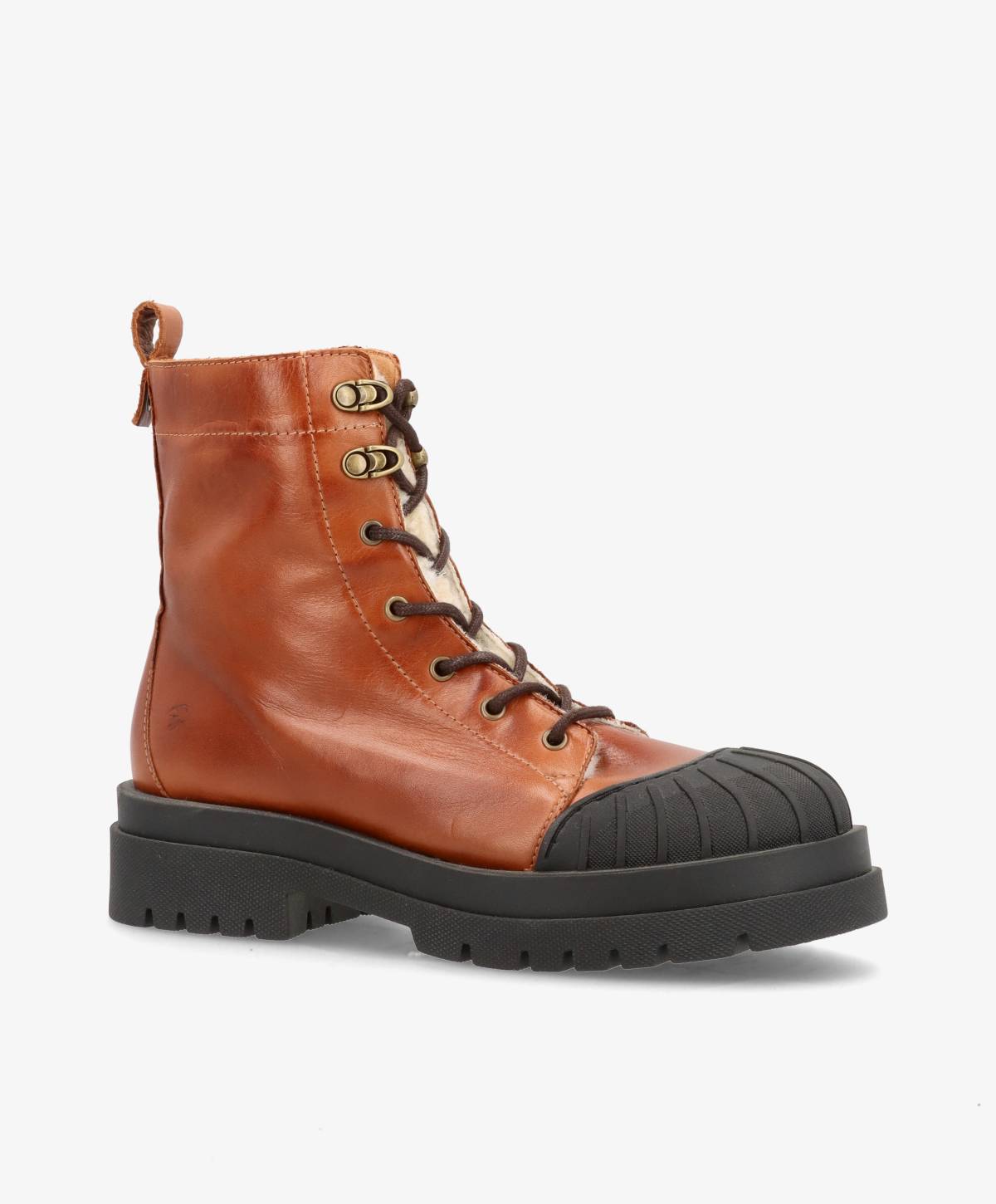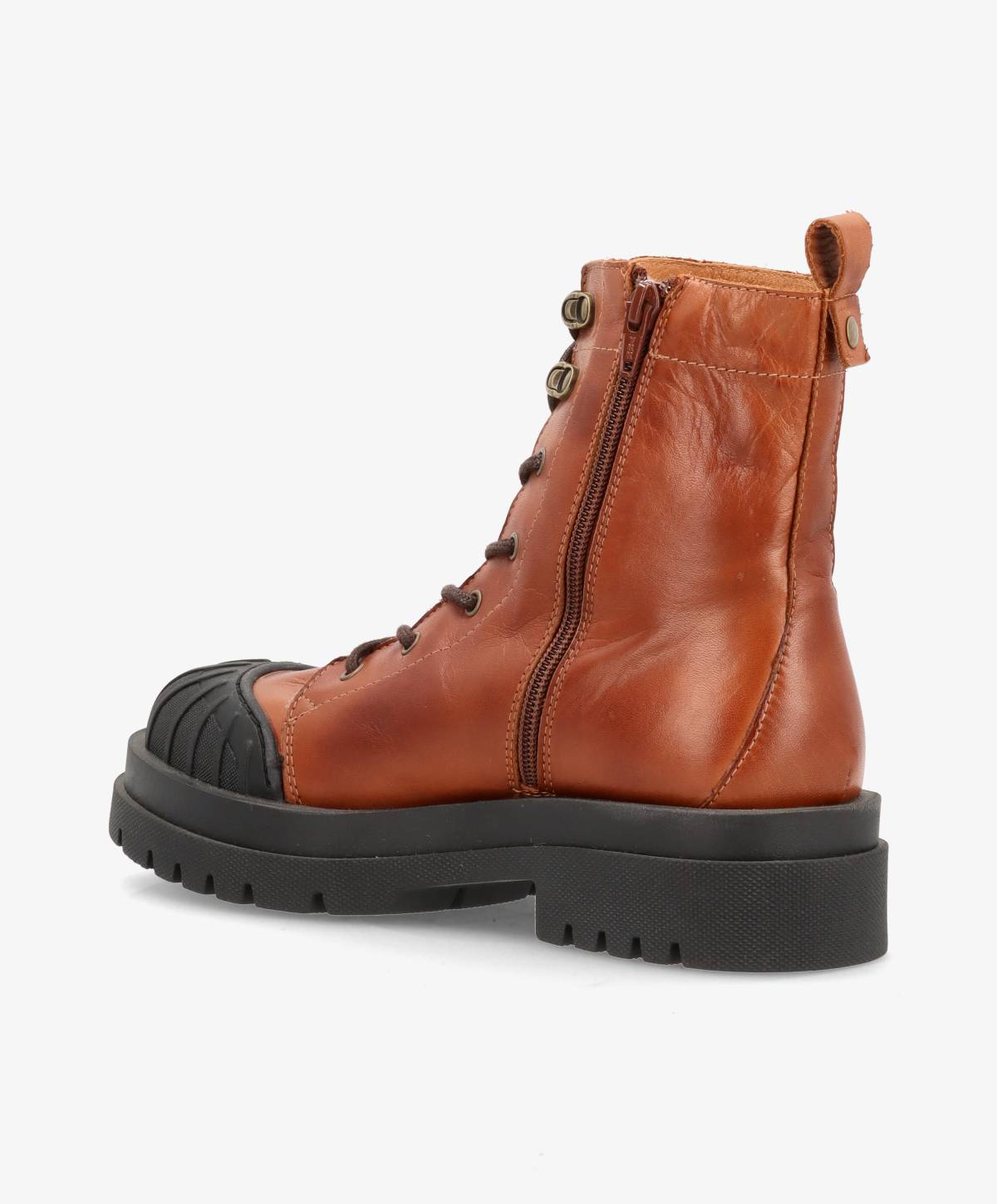 Få en helt unik style; dette er en kollektionsprøve, som udelukkende har været brugt til udstilling. Designet af Shoedesign Copenhagen, får du en skindstøvle i cognac med kontrastsnude. Der findes kun dette ene par, som er en str. 37.
