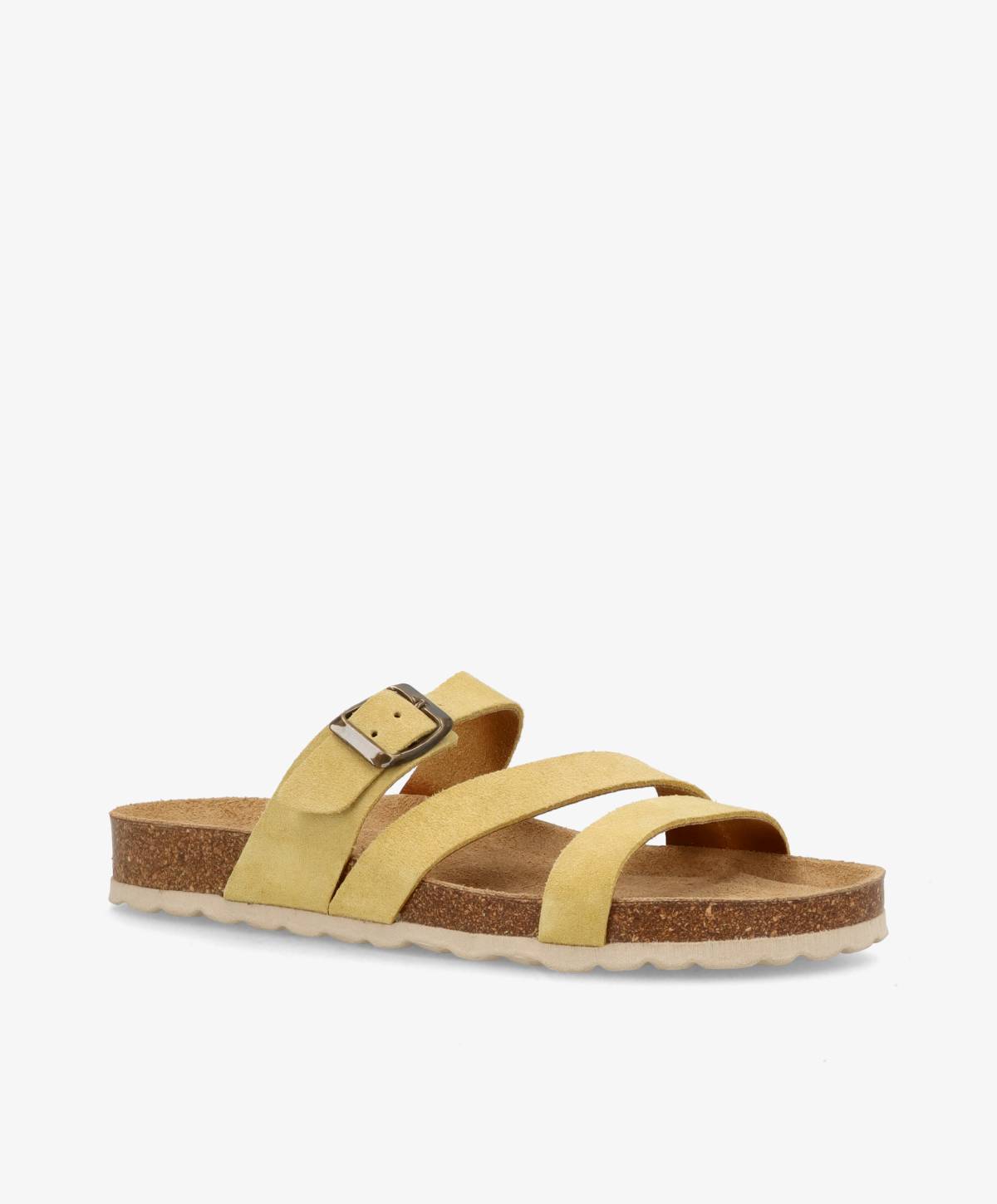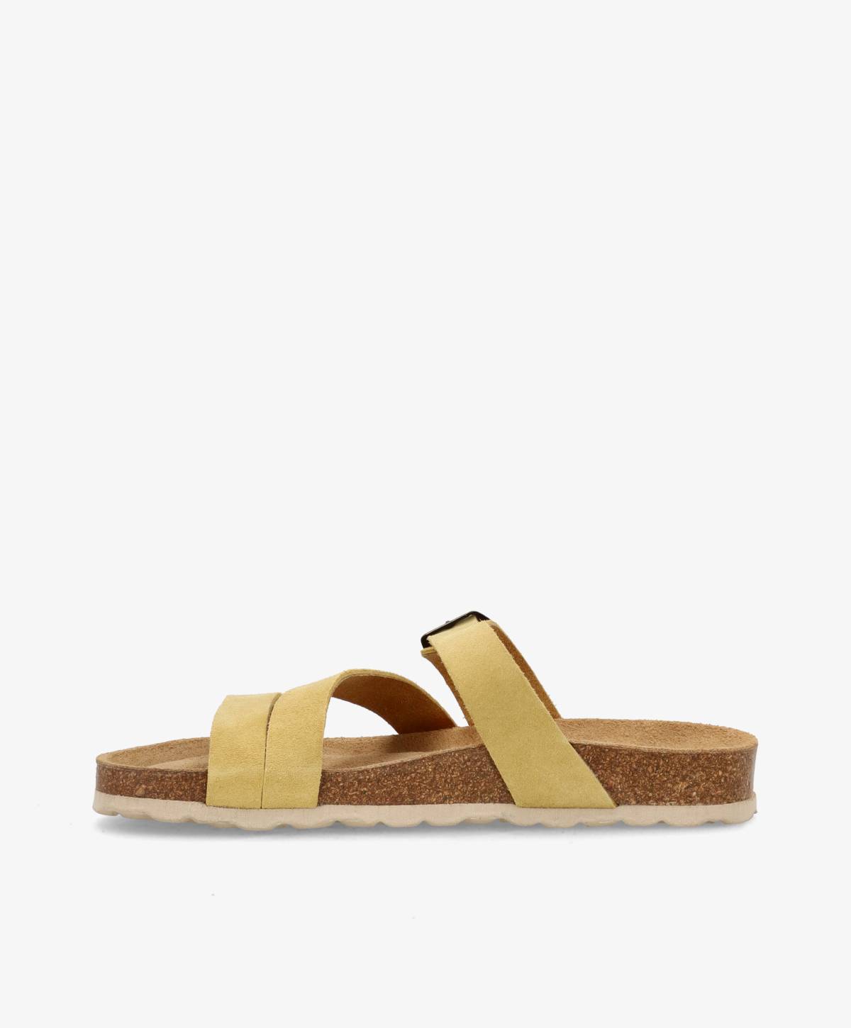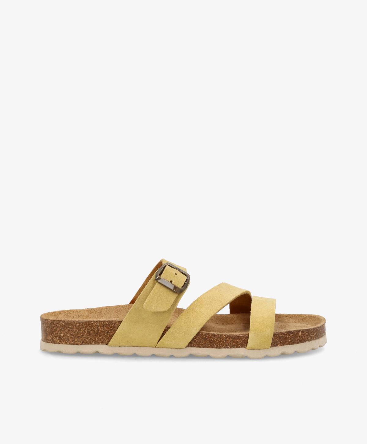 Få en helt unik style; dette er en kollektionsprøve, som udelukkende har været brugt til udstilling. Designet af Shoedesign Copenhagen får du en klassisk sandal i blødt ruskind. Sandalen har en fin, gul farve og tværremme over foden. Der findes kun dette ene par, som er en str. 37.