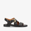 MILA fra shoedesign copenhagen er en elegant flad sandal i sort læder med et stilrent og moderne udtryk. De brede, krydsende remme giver et eksklusivt look, mens det markante guldfarvede spænde tilfører et feminint statement, der løfter designet og skaber en smuk kontrast til det sorte læder.