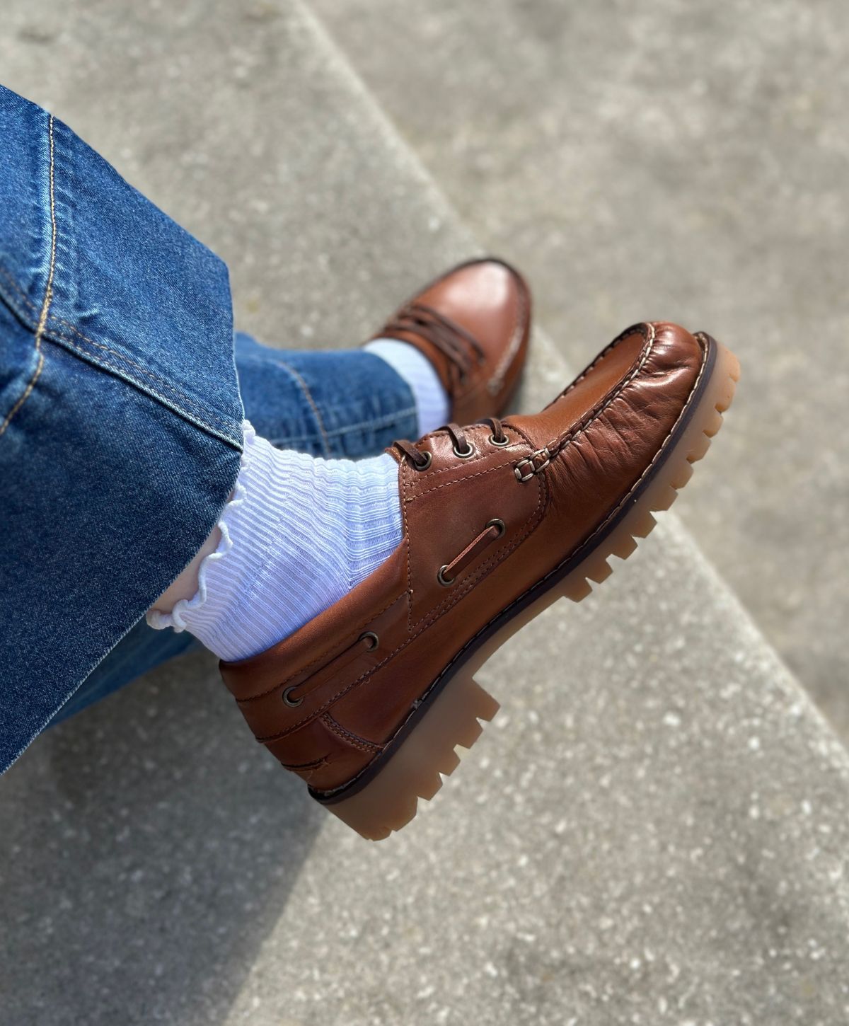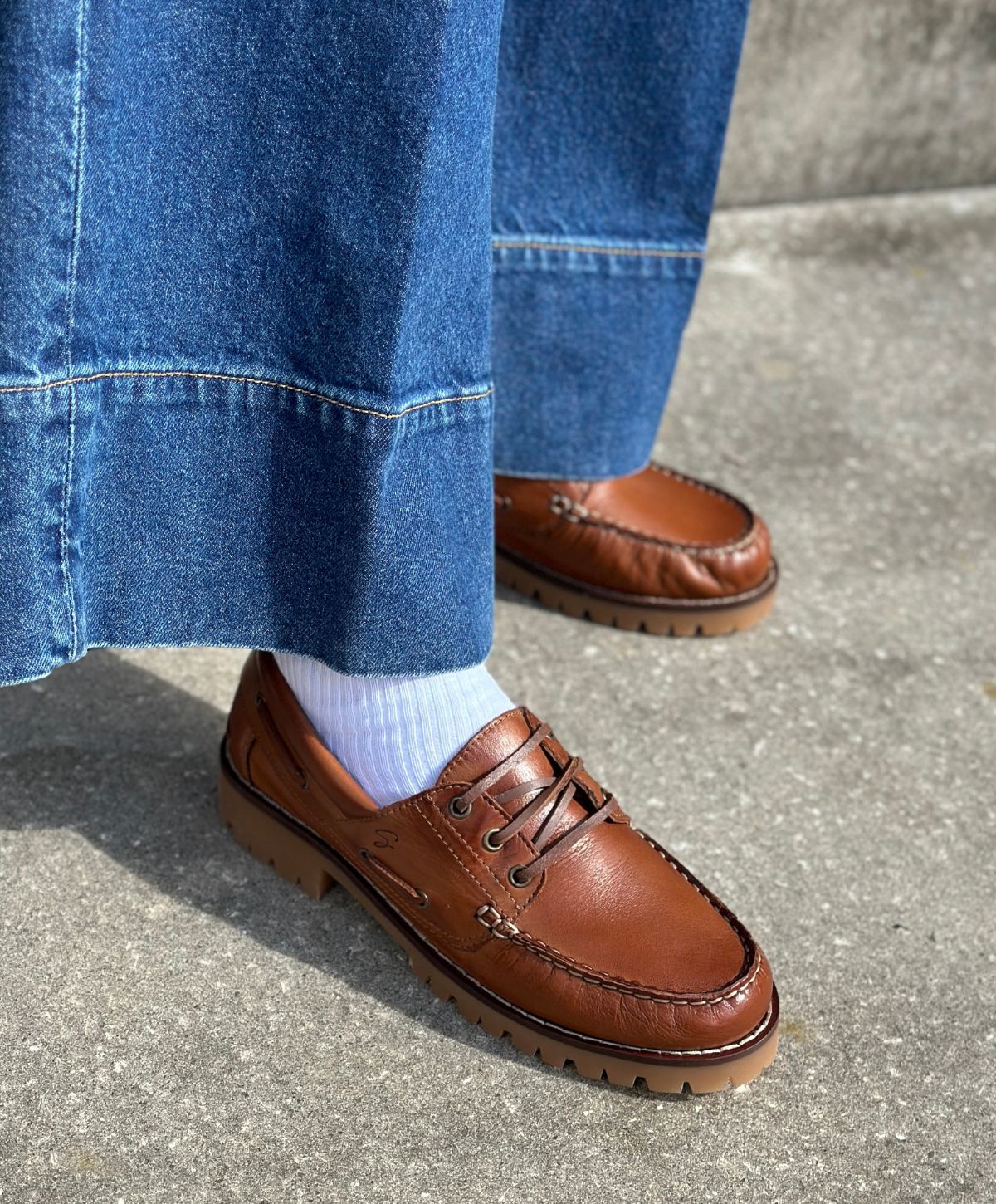 NAUTICA fra Shoedesign Copenhagen kombinerer klassisk maritim æstetik med et moderne, eksklusivt udtryk. Den glansfulde brune læderoverdel giver et elegant look, mens de kontrasterende syninger og metaldetaljer tilfører et luksuriøst touch. De robuste lædersnørebånd sikrer en perfekt pasform, og den kraftige gummisål med dybe riller garanterer optimalt greb og komfort til både bylivet og fritiden.