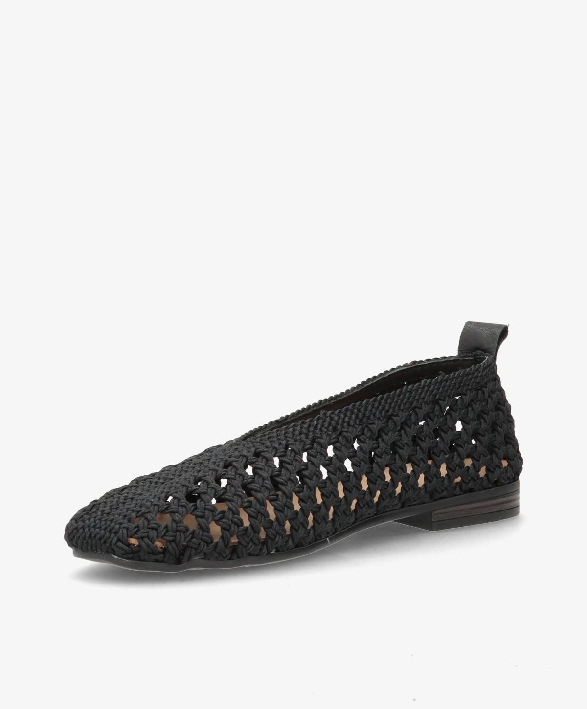 NEEVA Tx er en elegant ballerina i sort flettet tekstil, der kombinerer lethed og raffineret design. Det åbne, håndflettede udtryk giver skoen et eksklusivt og luftigt look, mens den spidse snude tilfører et sofistikeret touch. Den flade hæl og den fine afslutning bagpå skaber en feminin silhuet, som passer perfekt til både hverdag og mere formelle anledninger.
