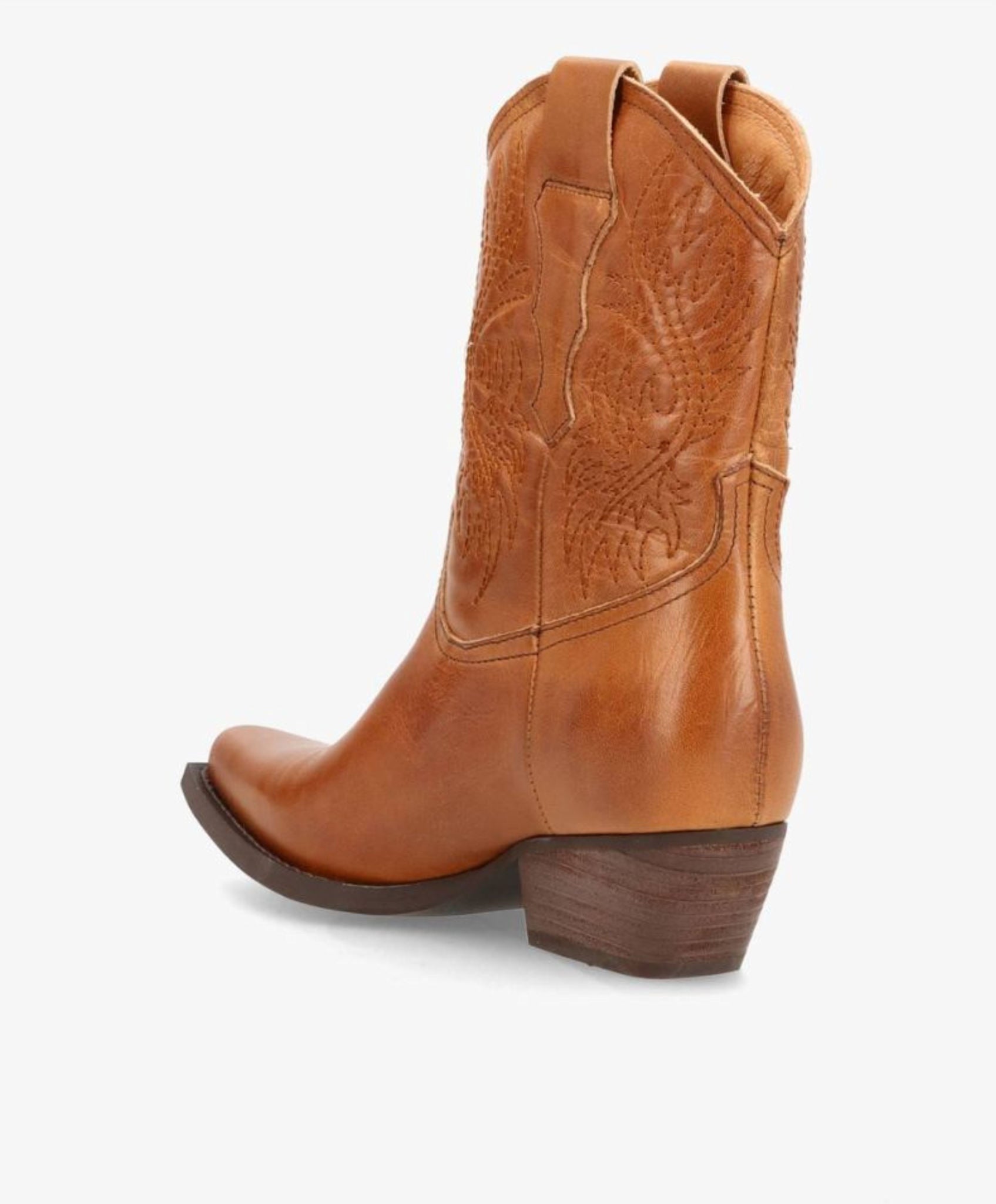 De lækreste cowboy boots fra phenumb i en klassisk cognac. Støvlerne har diskrete syninger, som har et moderigtigt touch og stadig bidrager til det typiske westernlook. De lækre boots er nemme at påføre, da de har et rummeligt skaft, hvilket også gør dem super behagelige. De er udført i et groft skind med en flot finish, som virkelig kun bliver smukkere med tiden. Derudover har de en spids snude og en lille hæl, som løfter lidt uden at gå på kompromis med komforten.