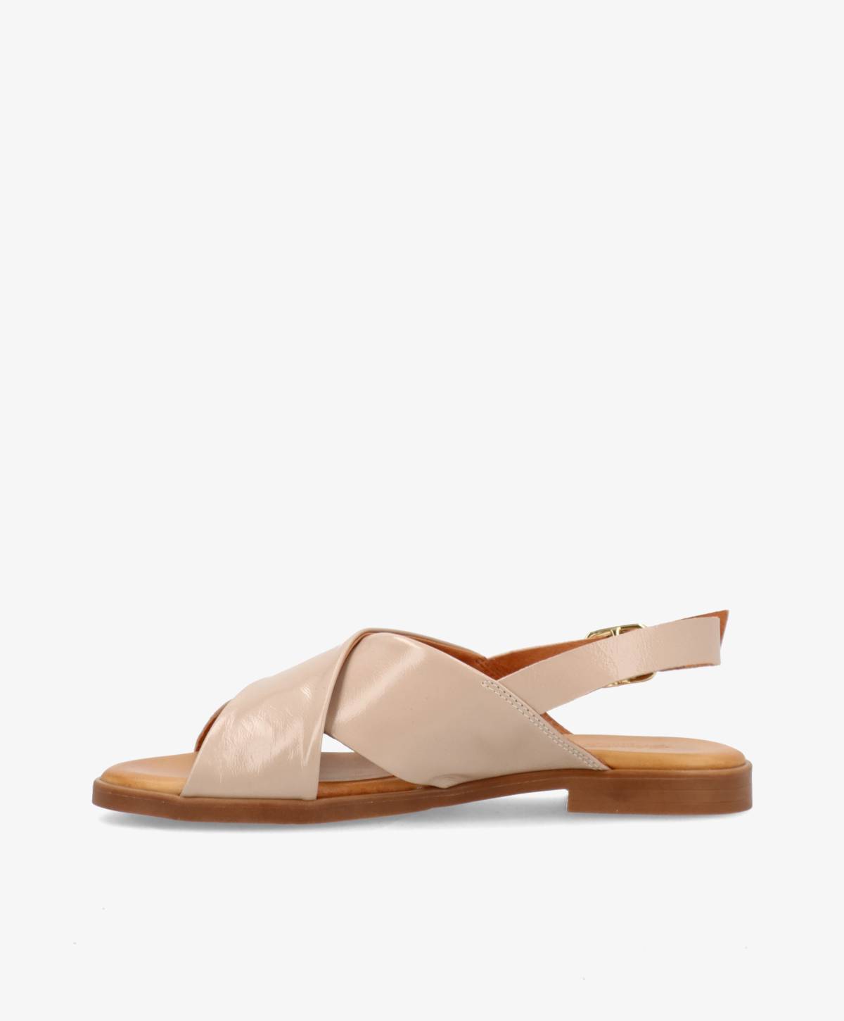 Giv din sommerstil et løft med NICOLA sandalen fra Shoedesign Copenhagen. Designet med blødt laklæder, krydsede remme og en elegant justerbar hælrem, får du en klassisk sandal, der både føles komfortabel og ser fantastisk ud. Den flade gummisål giver let støtte til dine fødder hele dagen, mens det tidløse beige lak tilfører et strejf af eksklusivitet.