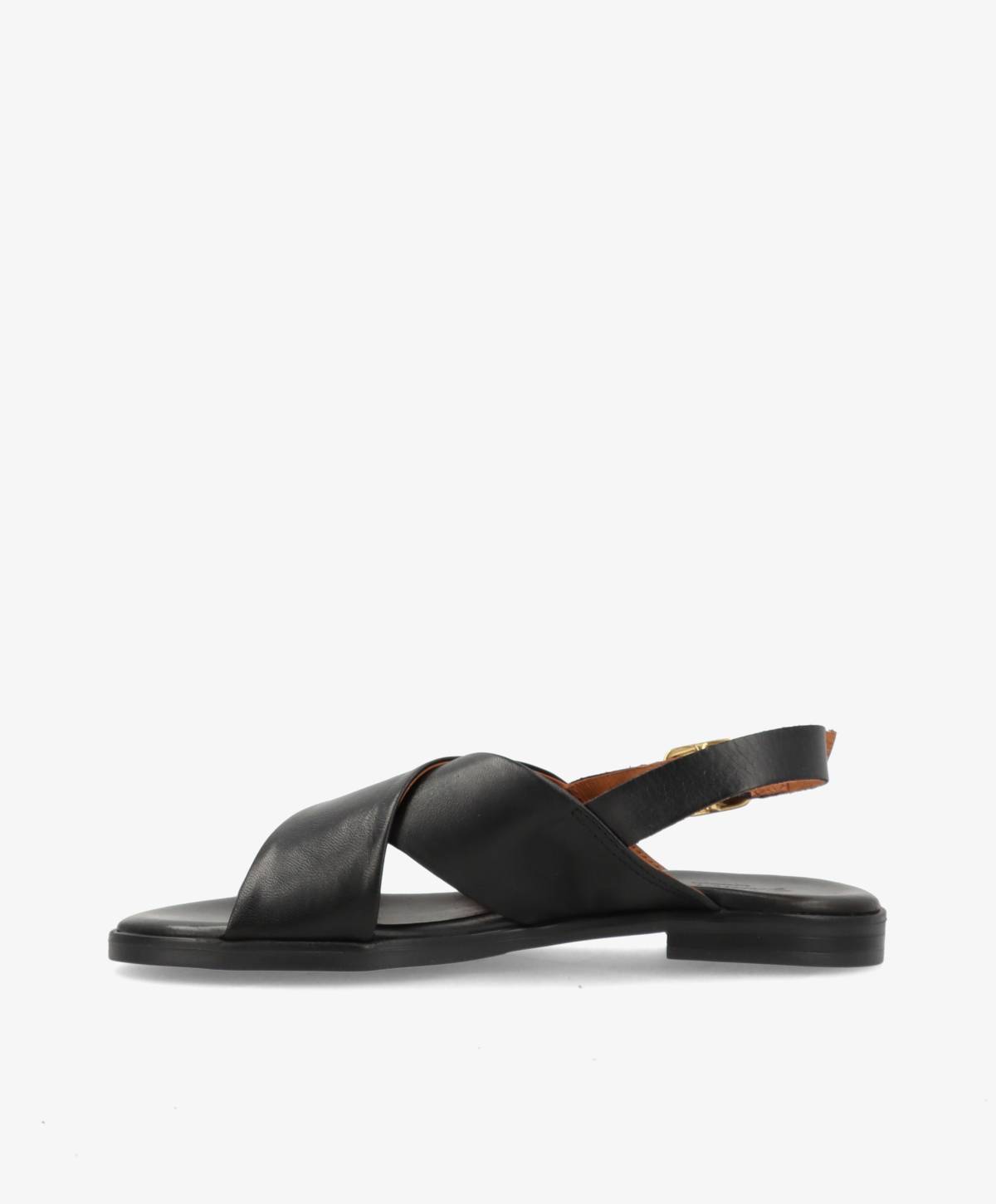 De fineste Shoedesign Copenhagen sandaler i en klassisk sort. Sandalerne er udført i et smørblødt skind, som kun bliver smukkere med tiden. Derfor er denne sandal også det perfekte valg til kvinden med den tidløse stil. Sandalerne har brede krydsremme, så foden sidder godt til, og om anklen er der en smal, justerbar rem, som gør, at de nemt kan tilpasses efter behov. De har en flad bund med en kort hæl, der følger fodens naturlige svaj, hvilket gør dem super komfortable. Deres stilrene udtryk gør også, at de nemt kan styles til et væld af outfits.