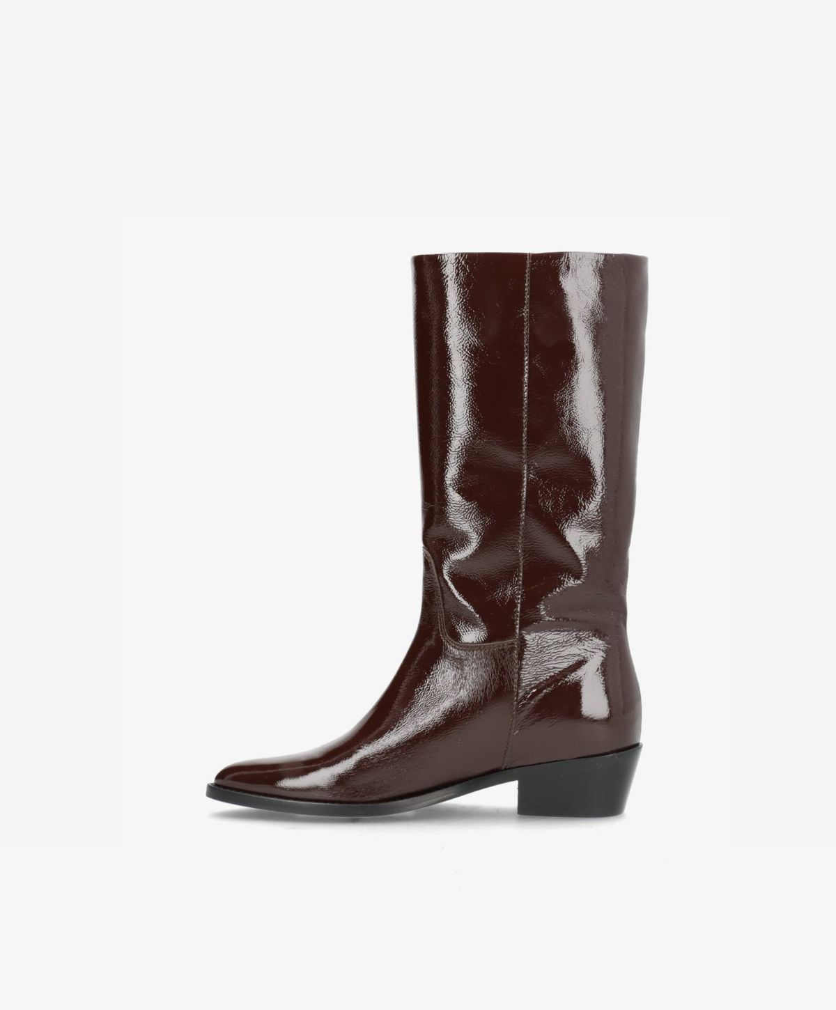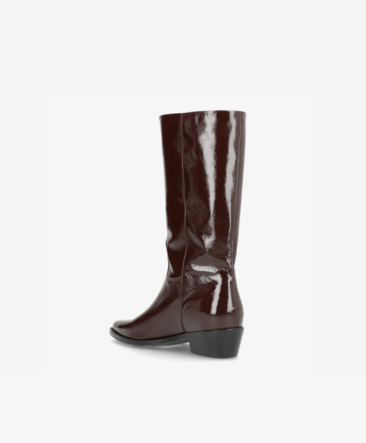 Løft dit look med den sofistikerede og slanke silhuet fra CONFIDENCE i brun laklæder fra phenumb copenhagen. Denne høje støvle er designet til at fange opmærksomhed med sit skinnende og luksuriøse finish, der emmer af attitude og eksklusivitet. Det spidse snit og den diskrete western-inspirerede hæl gør den perfekt til både rå denim og elegante kjoler.