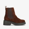 SADDLE S fra Shoedesign Copenhagen kombinerer moderne attitude med elegant komfort. Den brunfarvede ruskind giver et varmt og eksklusivt udtryk, mens den kraftige hæl og solide gummisål sørger for stabilitet og komfort hele dagen. Med både elastikpaneler og lynlås er de nemme at få af og på – perfekt til en travl hverdag med stil.