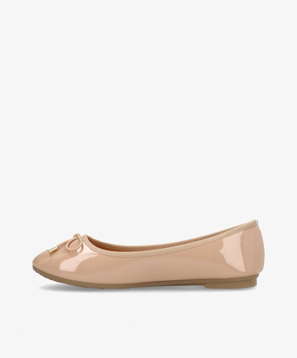 Klassiske og feminine ballerinaer i en flot beige farve med lak finish. De smukke ballerinaer har et tidløst look med en elegant sløjfe på snuden. De er nemme at påføre med den åbne pasform, og sidder godt til på foden. Brug de fine ballerinaer til hverdag eller fest.