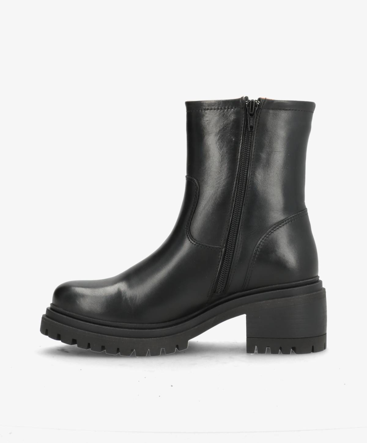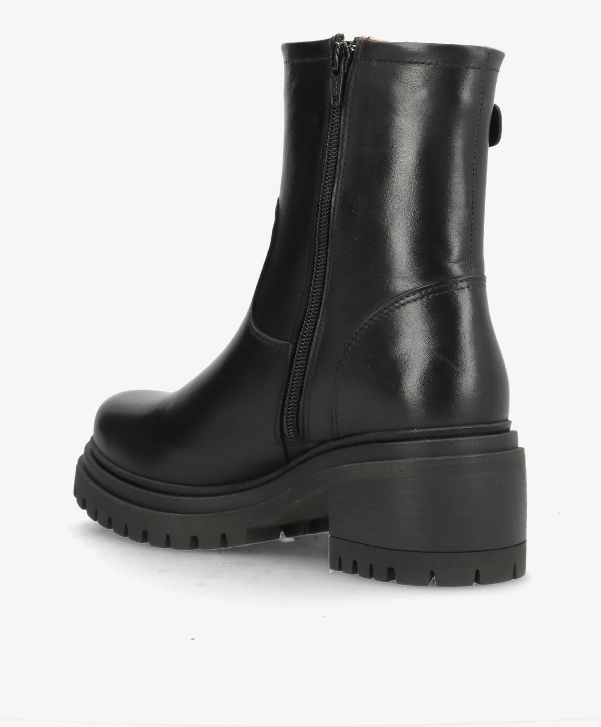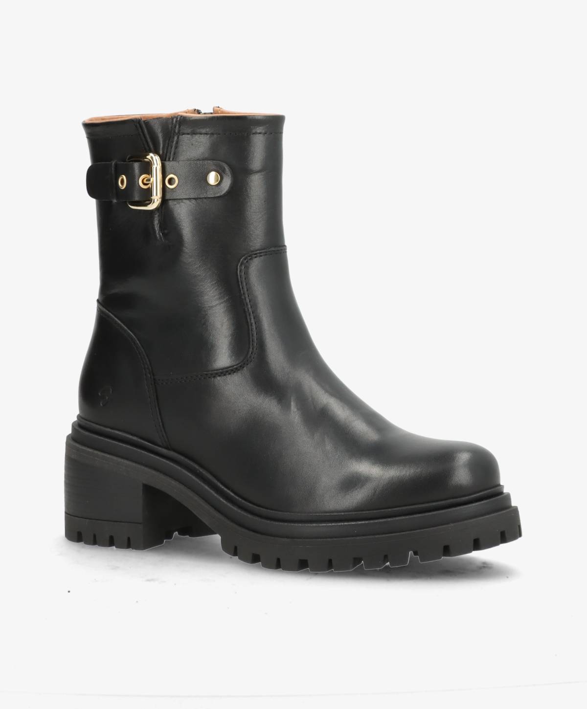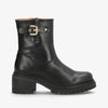 RIVET i sort læder fra shoedesign copenhagen er et par sofistikerede bikerstøvler med et tidløst udtryk. Støvlen er fremstillet i glat, sort læder og detaljeret med en elegant gylden spænde, der tilfører et luksuriøst touch. Den solide blokhæl kombineret med den kraftige gummisål sikrer både komfort og stabilitet, så du kan bære støvlen hele dagen uden at gå på kompromis med stilen.