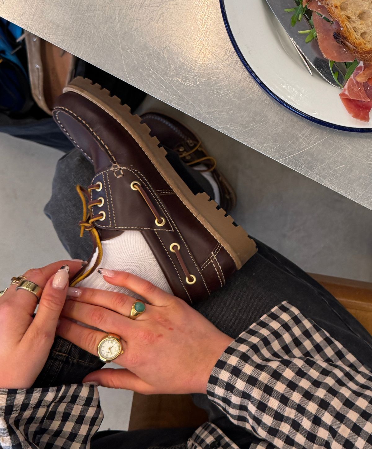 RUDDER X i brunt læder kombinerer klassisk elegance med en moderne, robust stil. Det glatte læder og de fine kontrastsyede detaljer skaber et luksuriøst udtryk, mens de gyldne metaløjer og lædersnørebånd fuldender det eksklusive look. Den kraftige gummisål giver solidt fodfæste og komfort, hvilket gør denne sko perfekt til både byliv og outdoor-eventyr.