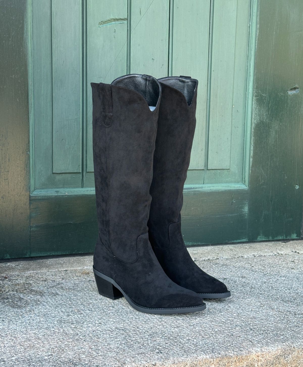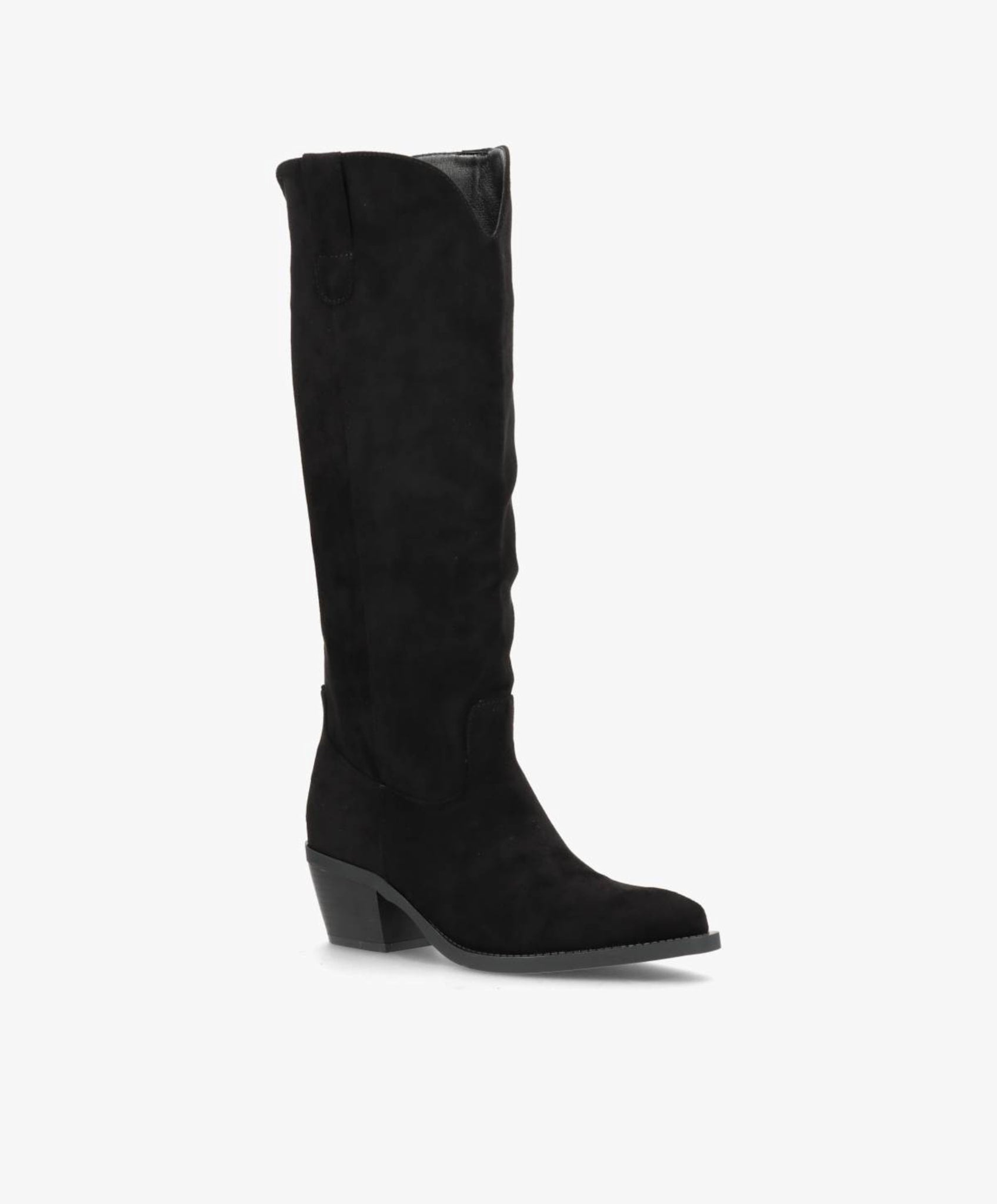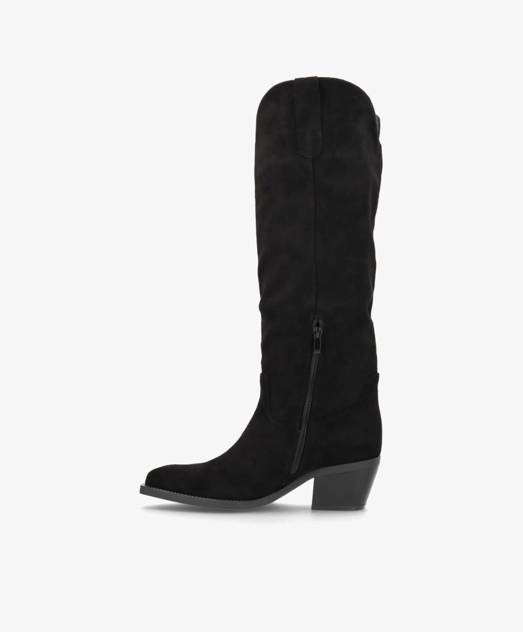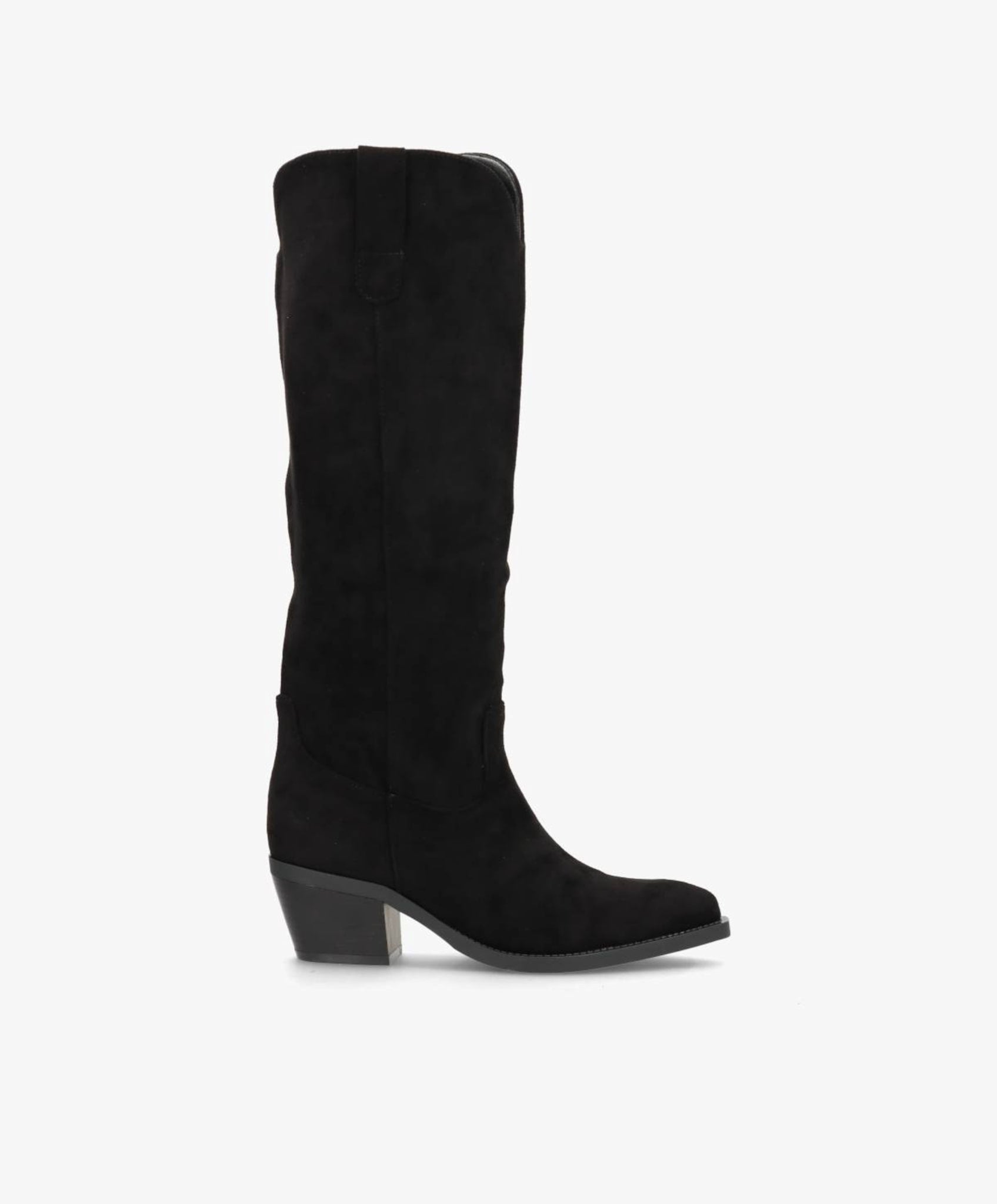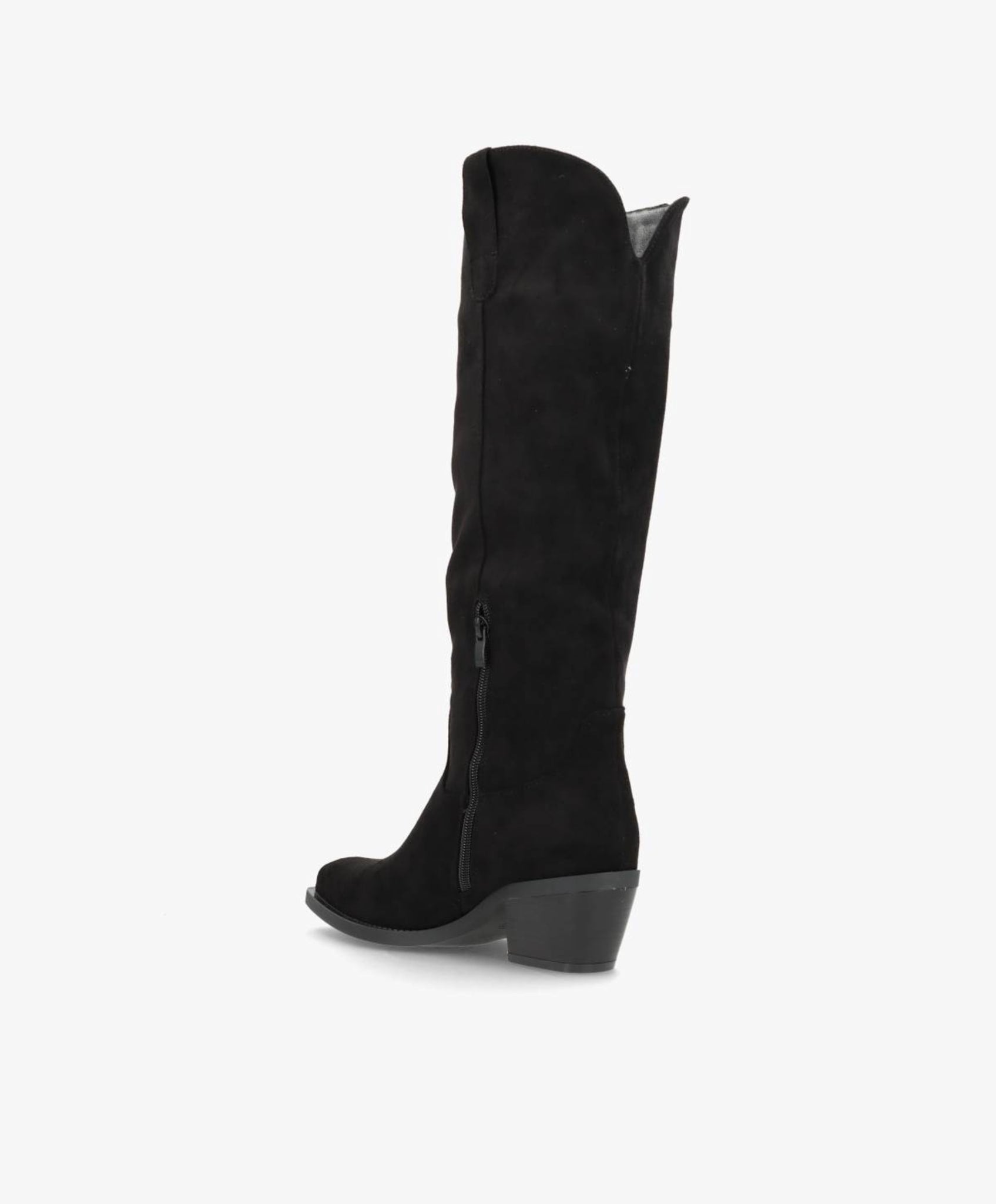 SAGE er en elegant lang støvle i sort imiteret skind, der kombinerer tidløst design med moderne komfort. Den klassiske silhuet fremhæves af en let spids snude og en stabil blokhæl, som giver et feminint løft uden at gå på kompromis med komforten. Det bløde materiale skaber et luksuriøst look, mens den diskrete lynlås på indersiden sikrer nem af- og påtagning.