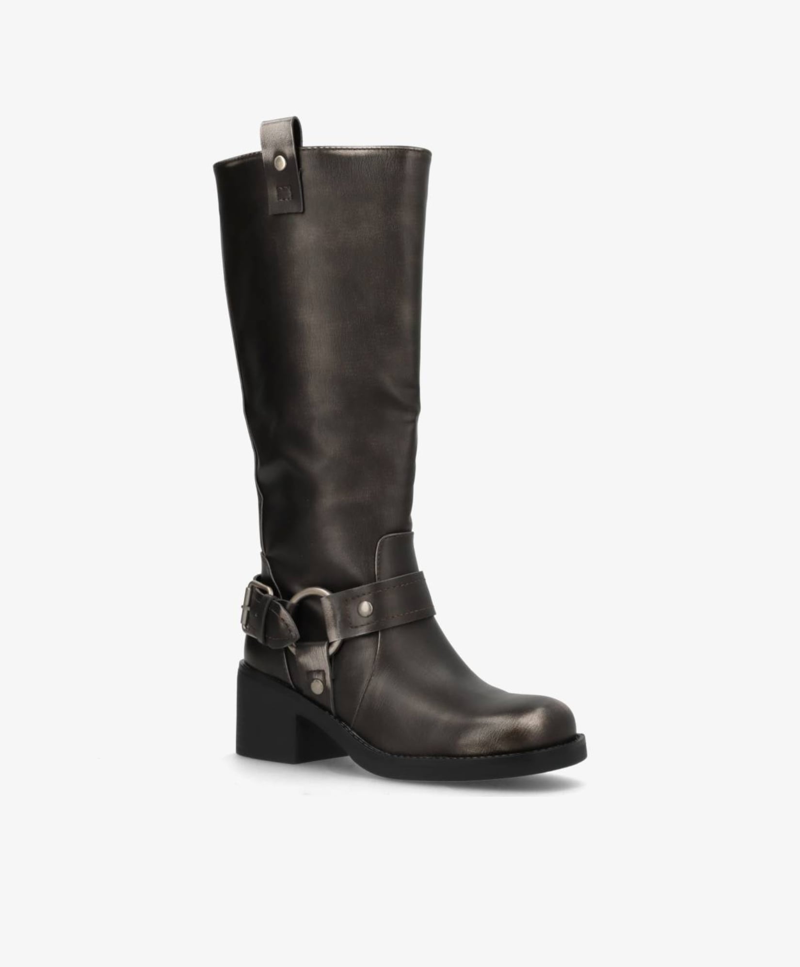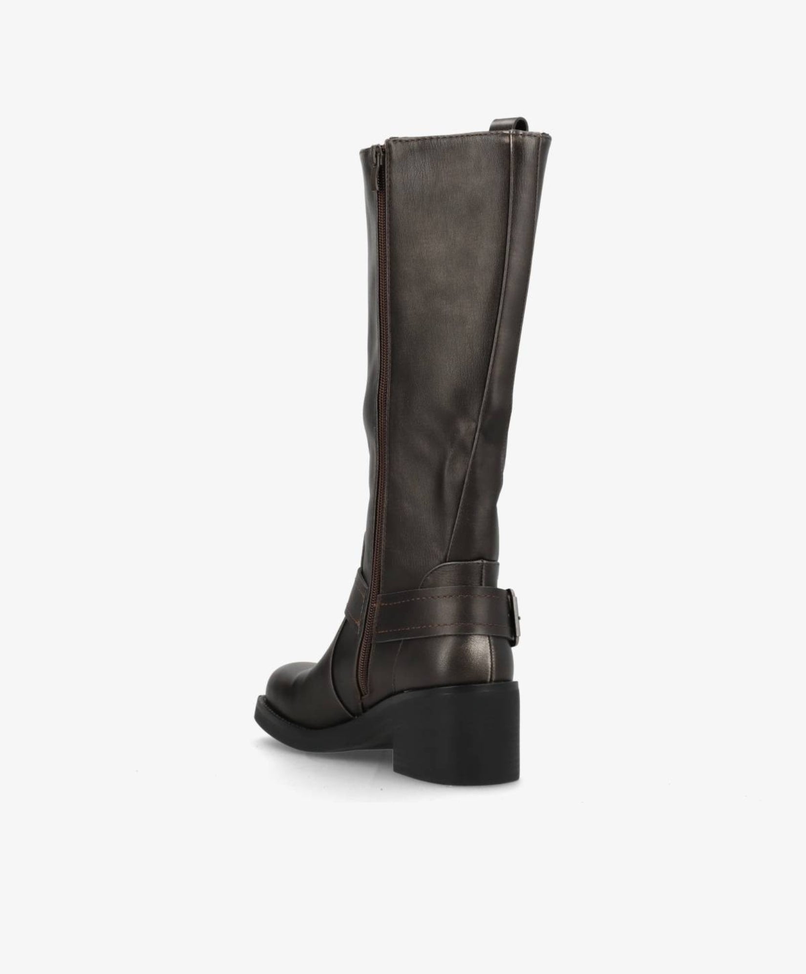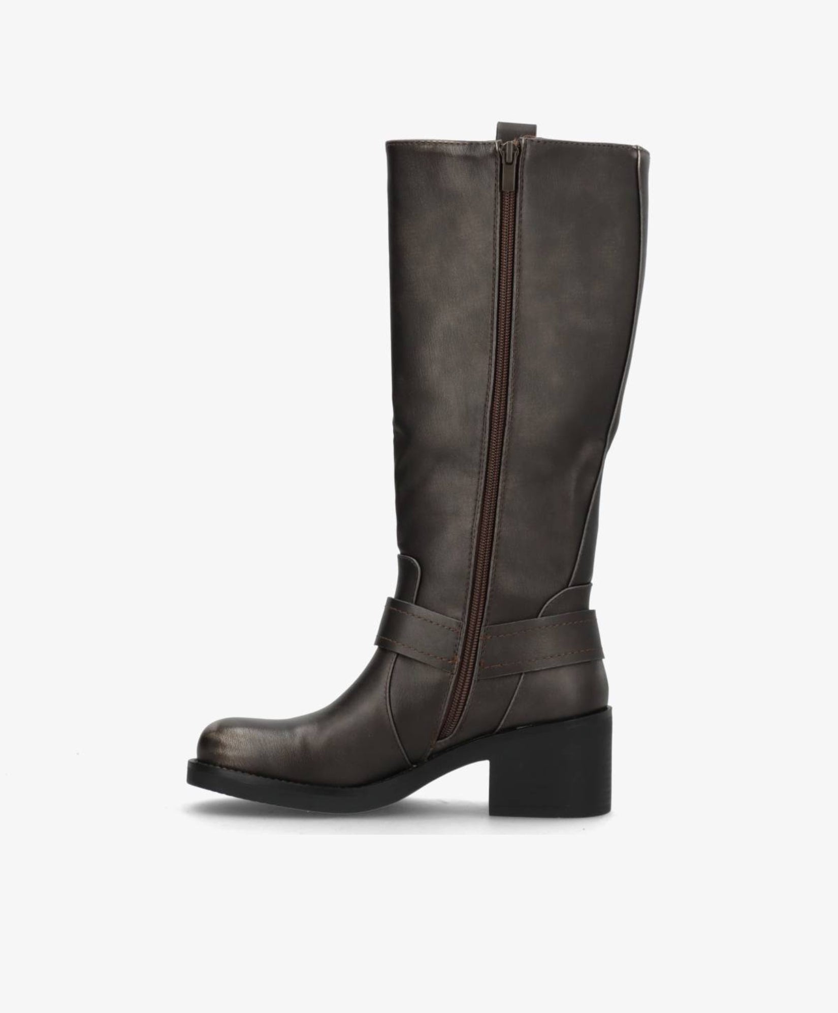 Disse sorte dame støvler i imiteret skind har et elegant og holdbart design og et meget moderigtigt look. De sorte lange støvler kommer med en dekorativ spænde og en solid hæl på ca. 5 cm, som giver ekstra højde og komfort. En praktisk lynlås på indersiden gør dem nemme at tage af og på. Disse støvler er velegnede til både hverdag og fest, de kan styles med både jeans, kjoler og nederdele, hvilket gør dem helt perfekte. Denne populære støvle er kommet i 3 farver.