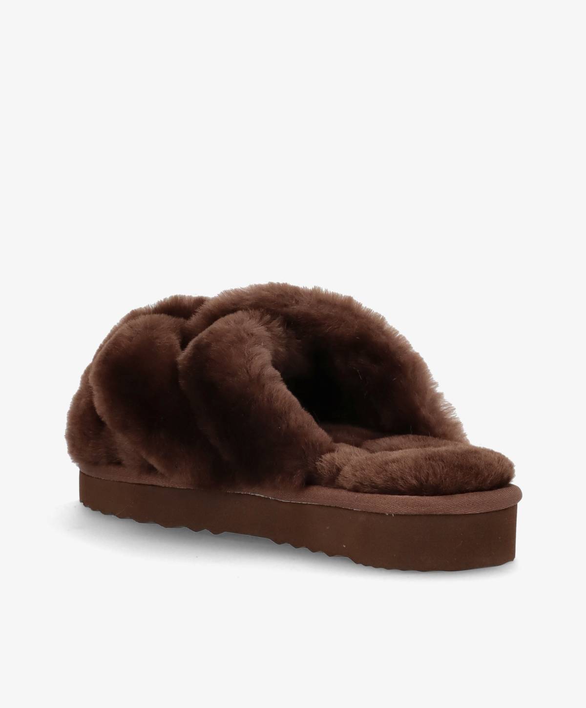 De skønneste phenumb hjemmesko i en tidløs mørkebrun. Hjemmeskoene bliver med sikkerhed en favorit hos hende, der ikke går på kompromis med komfort og design. De fine hjemmesko er lavet i et blødt lammeuld, som giver den bedste varme og en fantastisk komfort. Derudover får man med EVA-sålen et par hjemmesko, der er skønne at gå i. De er nemme at påføre med den åbne hæl og sidder godt på foden med de mange remme, der samles i en cool knudedetaljer. Hjemmeskoene oser af luksus og bliver med sikkerhed en favorit i garderoben. Kan anvendes til både udendørs og indendørs brug.