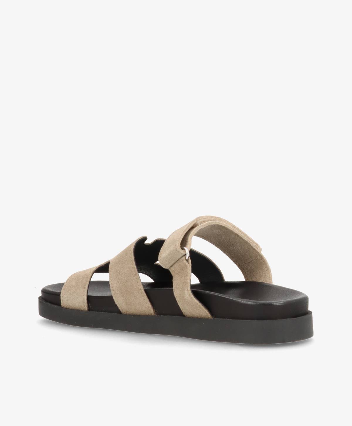 Gør sommergarderoben komplet med SELENA sandaler i smørblødt ruskind. Denne elegante model har et minimalistisk design med brede remme og en justerbar velcrolukning, der sikrer perfekt pasform. Den let polstrede indersål giver optimal komfort, mens den sorte gummisål tilføjer et moderne touch.