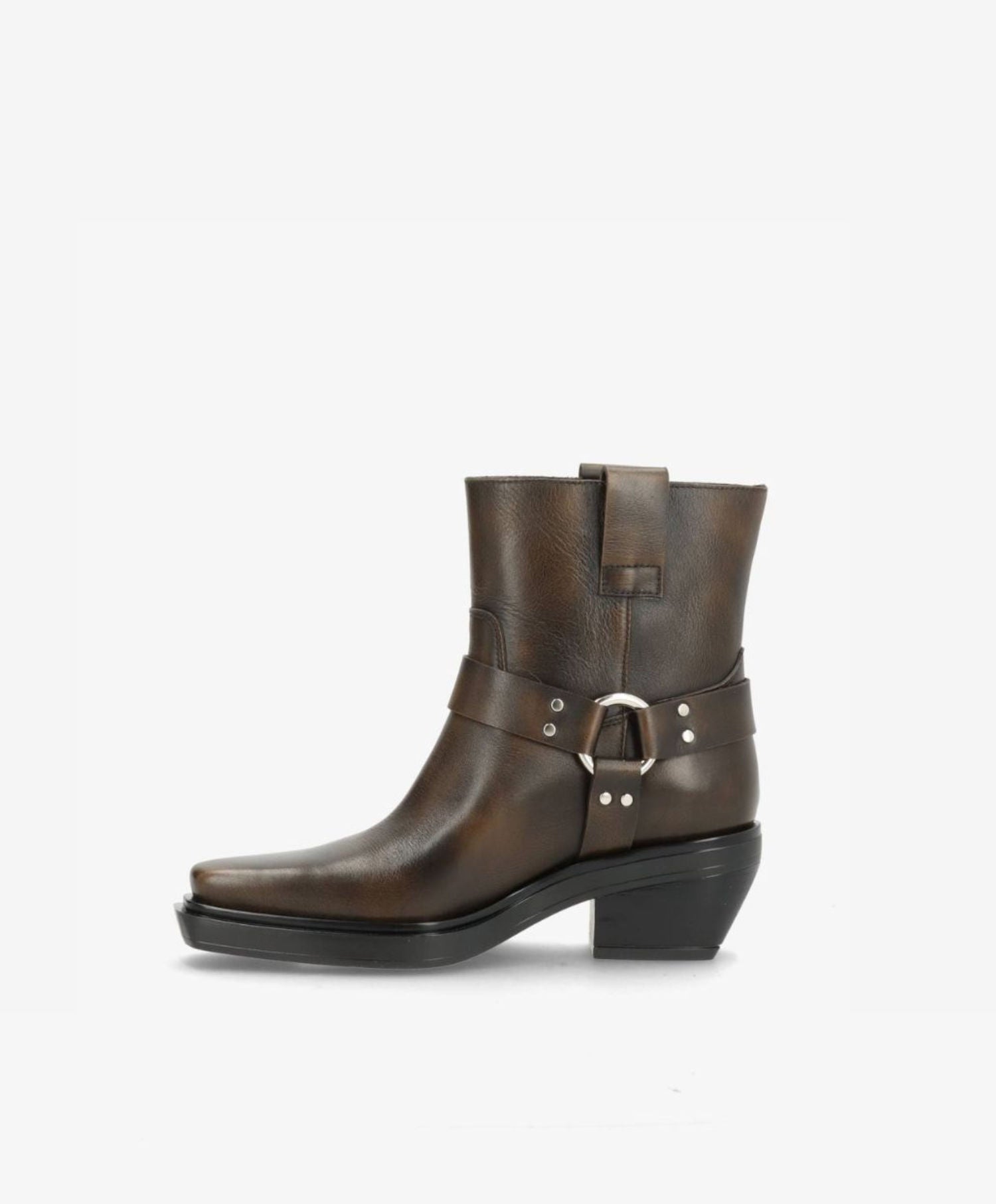 Den firkantede snude og de stilfulde metalspænder tilfører et trendy western-vibe, der passer perfekt til både jeans og kjoler. Denne støvle er ikke kun en statement-piece, men også en komfortabel investering i din garderobe, som du vil elske at bruge sæson efter sæson. Opgrader dit look med denne unikke støvle fra phenumb copenhagen.